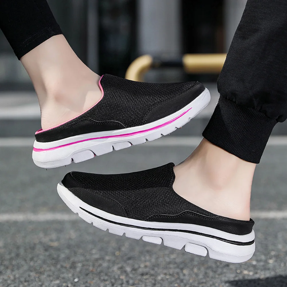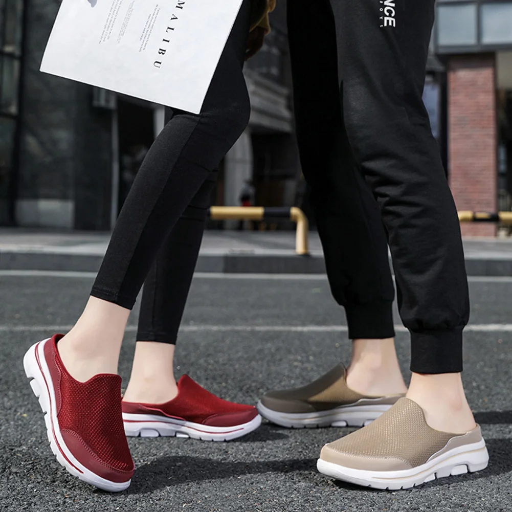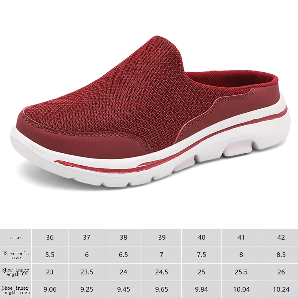 Features: 1.Breathable Mesh Design: These walking shoes feature a mesh upper with hollow design, ensuring excellent breathability for comfortable wear during summer indoor or outdoor activities. 2.Ultra-Soft Material: Crafted from lightweight materials, these mule clogs relieve pressure on your feet, allowing full relaxation even after a long day of work or driving. 3.Arch Support Design: These slippers incorporate an arch support feature to provide gentle support, helping to alleviate common foot aches caused by extended standing or walking. 4.Slip-Resistant Outsole: The loafers come with a slip-resistant textured sole that offers exceptional grip and stability on various surfaces, ensuring safety during any activity. 5.Versatile Use: These closed toe slides are perfect for all seasons and for both indoor and outdoor activities, such as beach outings, poolside lounging, gardening, or as cozy home footwear. Specification: