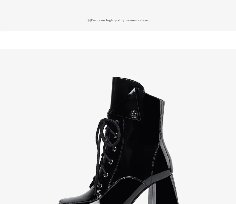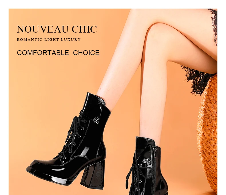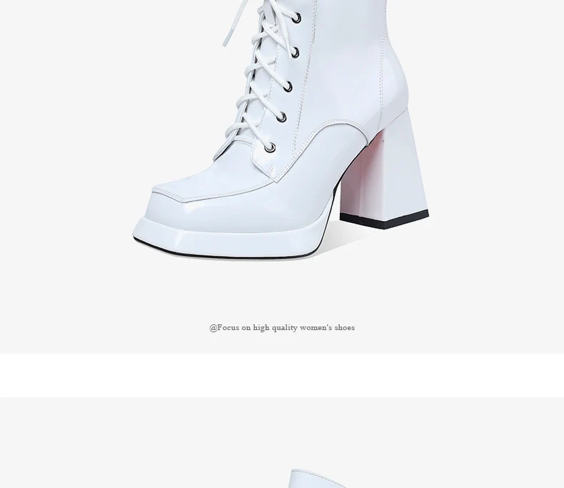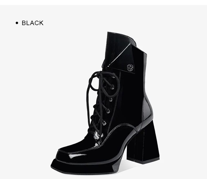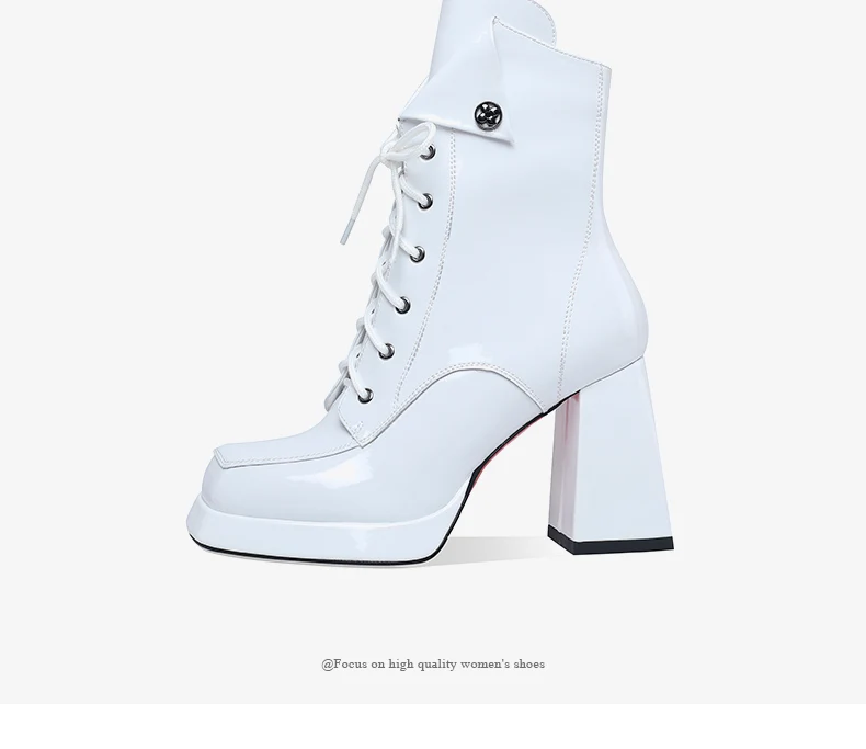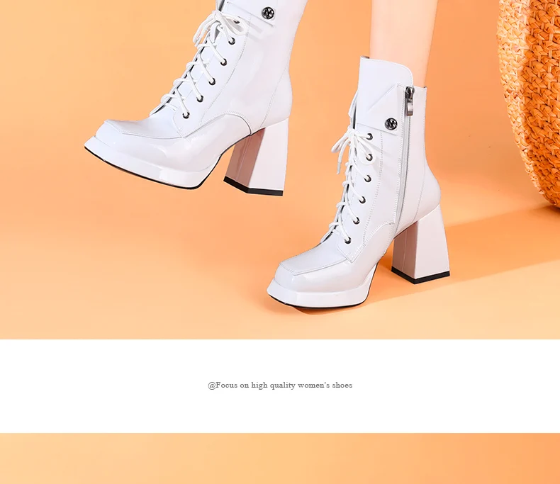 Women’s 2022 New Autumn Winter Shoes Genuine Patent Leather Chunky High Heel Platform Black White Dress Party Female Ankle Boots
