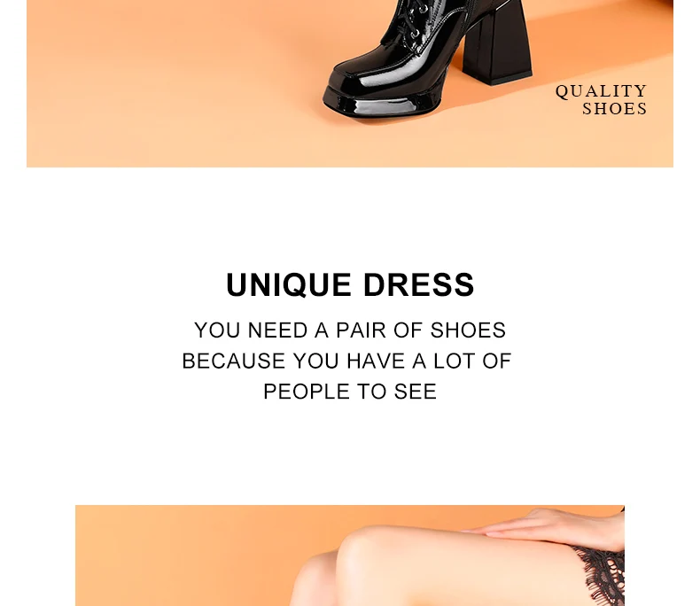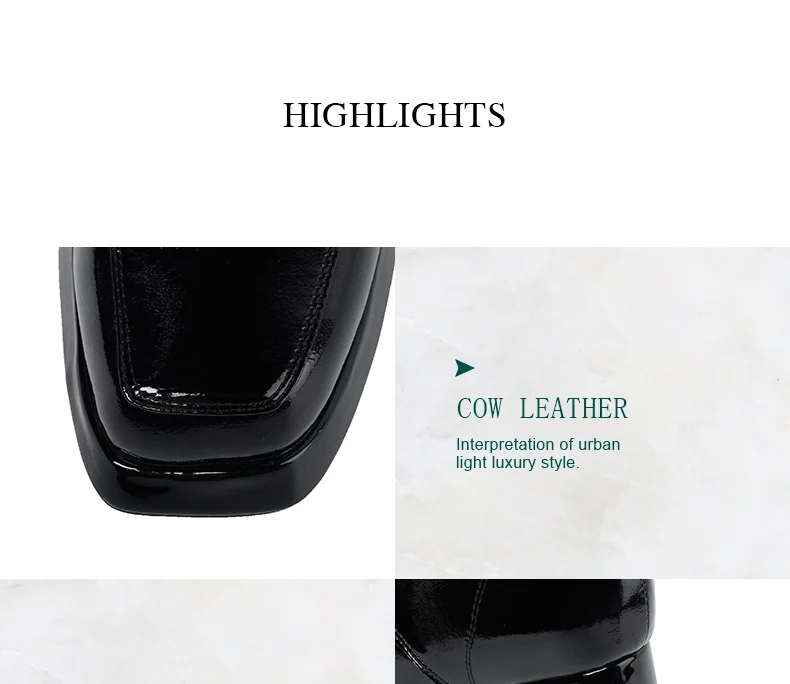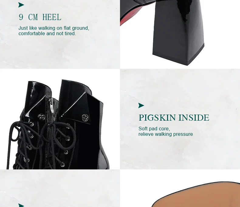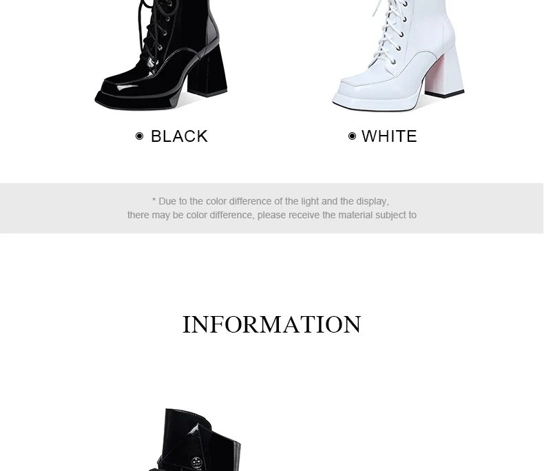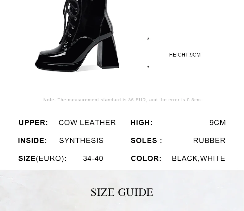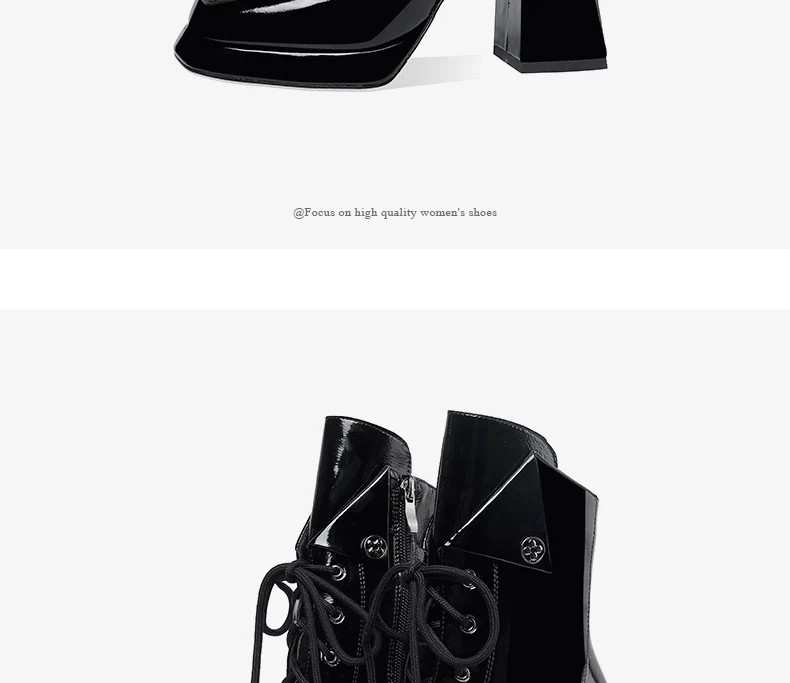 Women’s 2022 New Autumn Winter Shoes Genuine Patent Leather Chunky High Heel Platform Black White Dress Party Female Ankle Boots