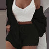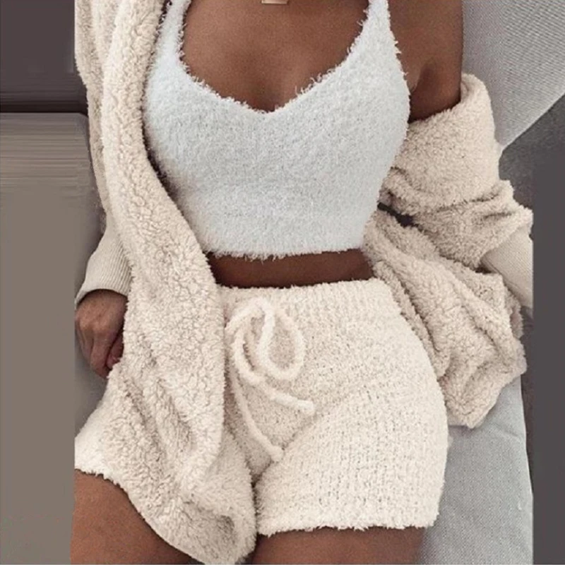 Women’s Autumn/Winter Plush Pajama Set with Plush Pajama and 3-Piece Sleeper Pants for Cold Protection and Warmth, Home Clothes