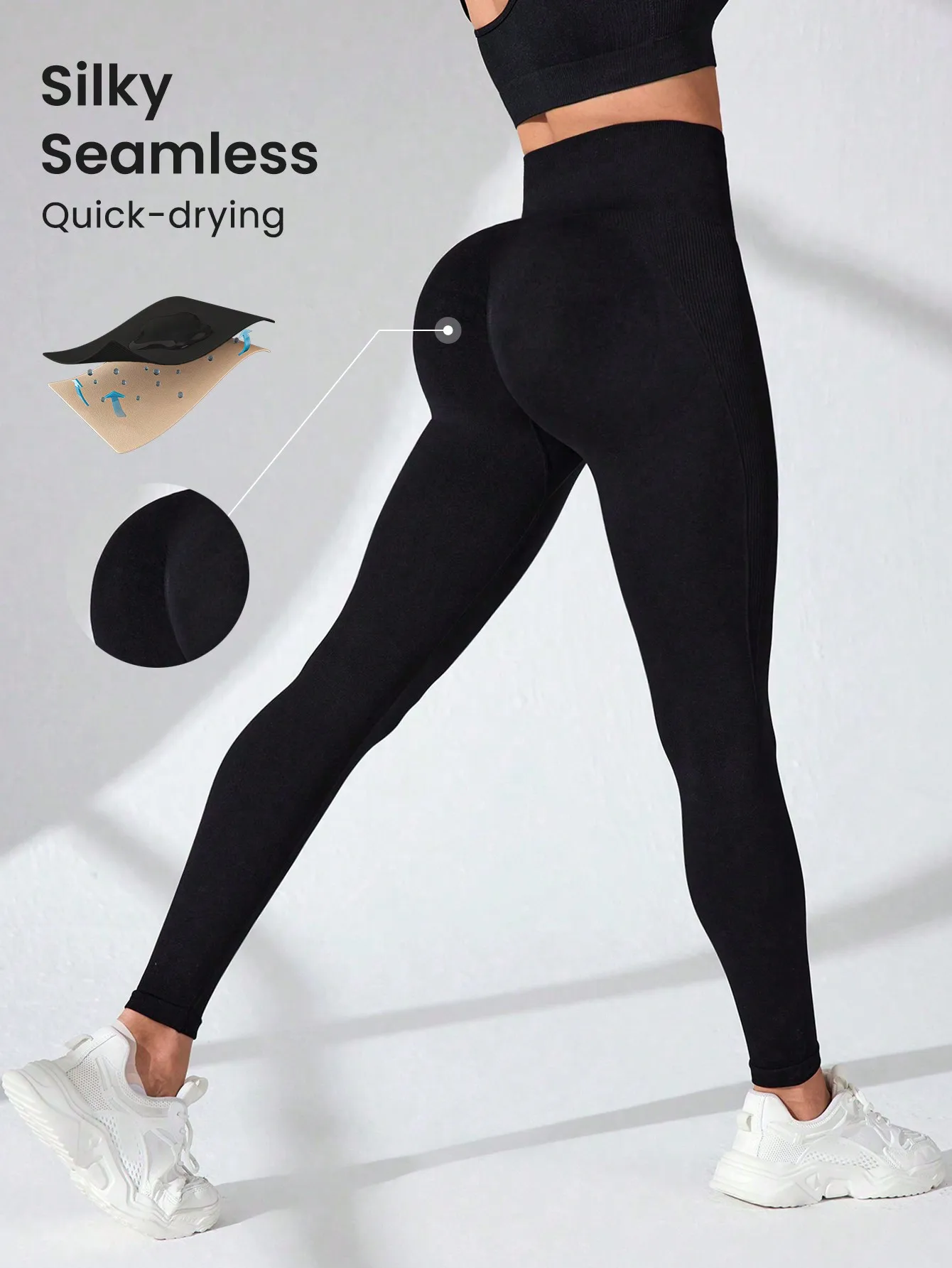 Women’s Seamless Knit Athletic Yoga Pants, Moisture-Wicking Quick-Dry Breathable, High-Waist Compression Leggings For Running Fi