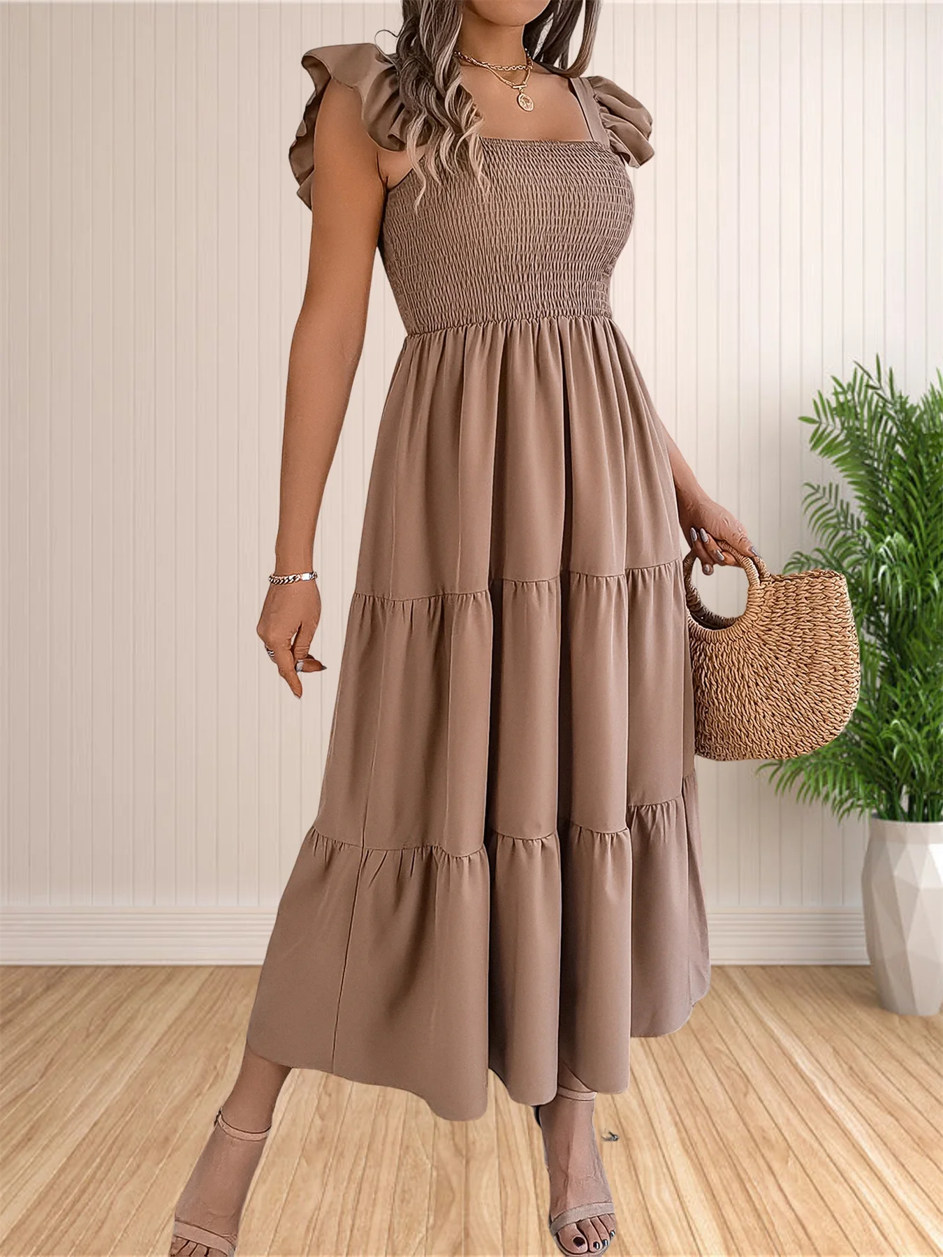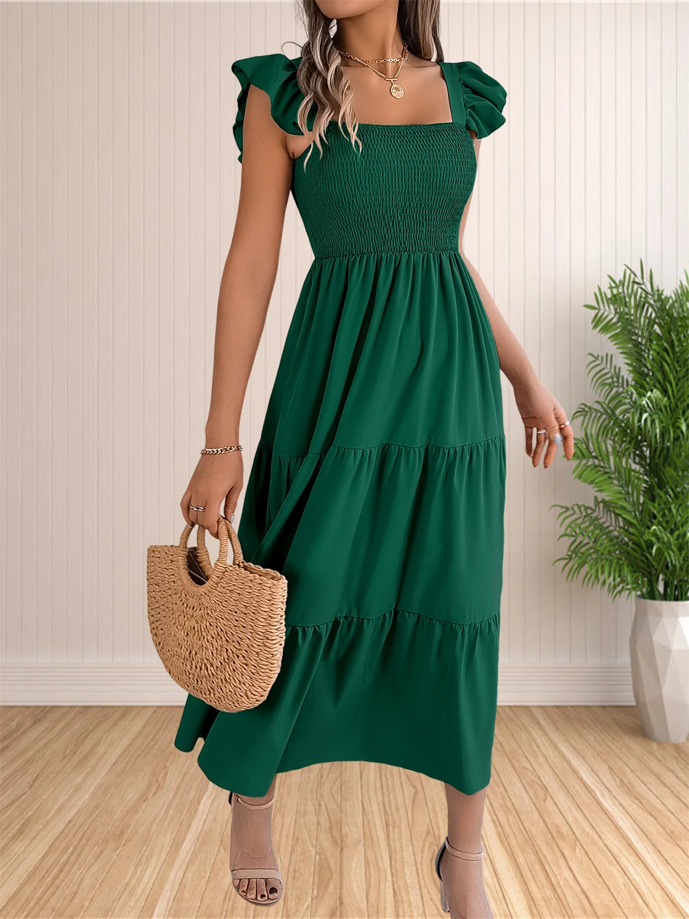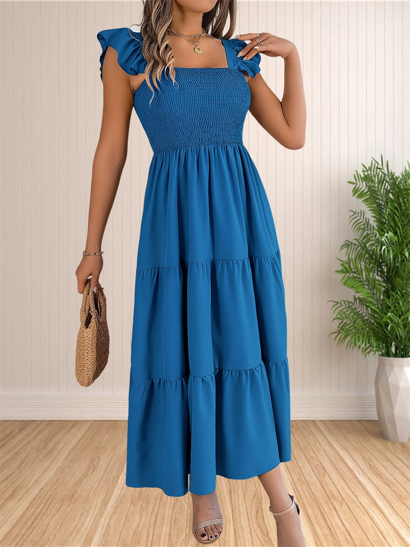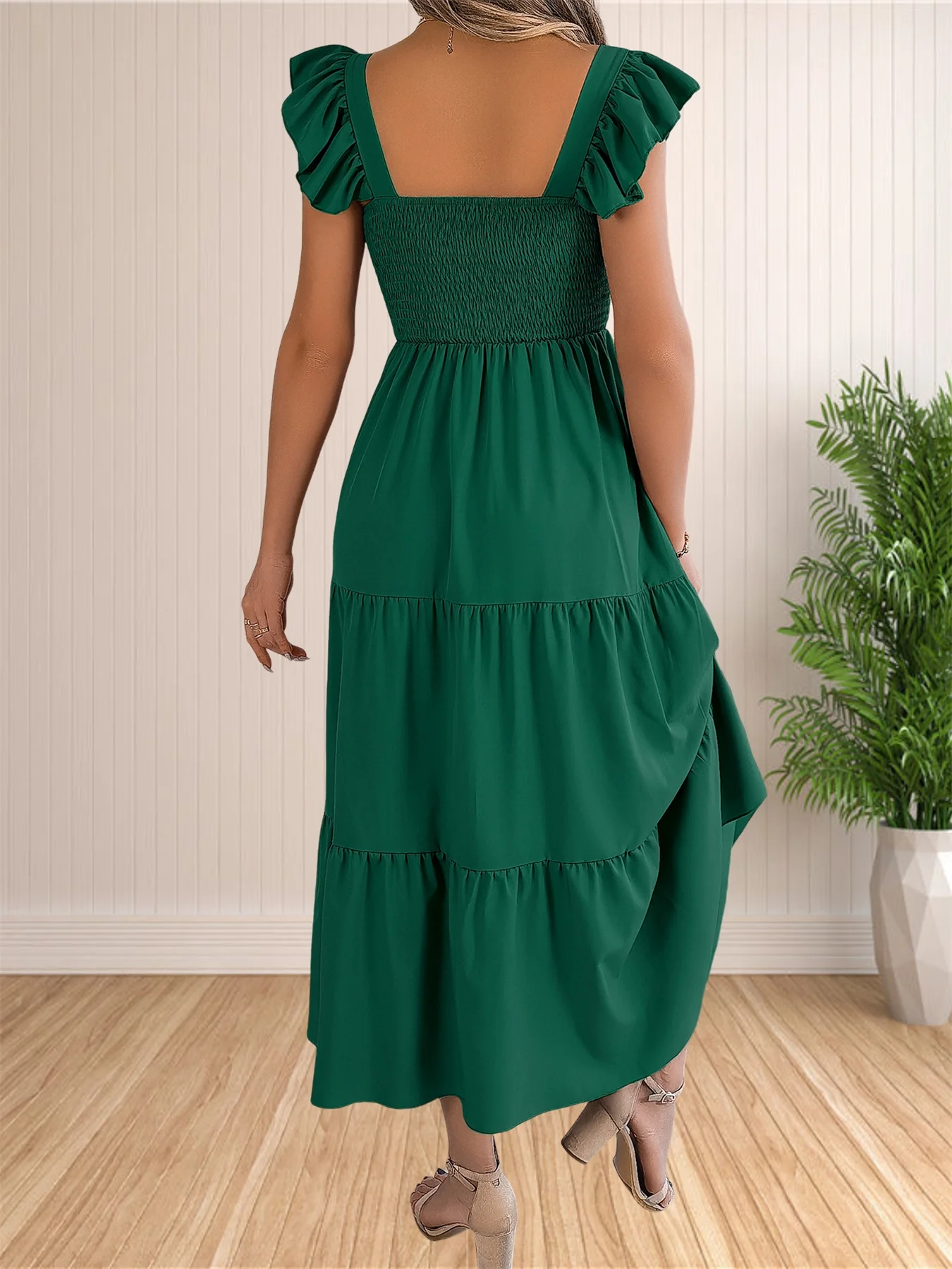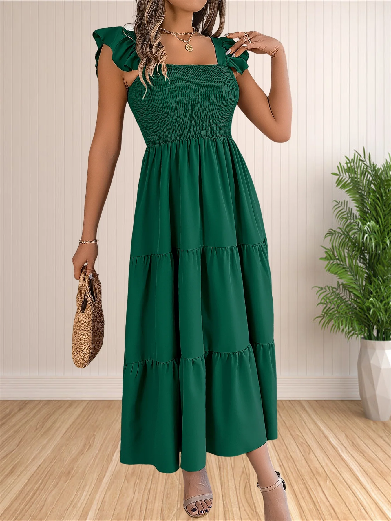 Women’s Summer Boho Dress Casual Floral Print Spaghetti Strap Square Neck Long Maxi Dress Beach Sun Dress