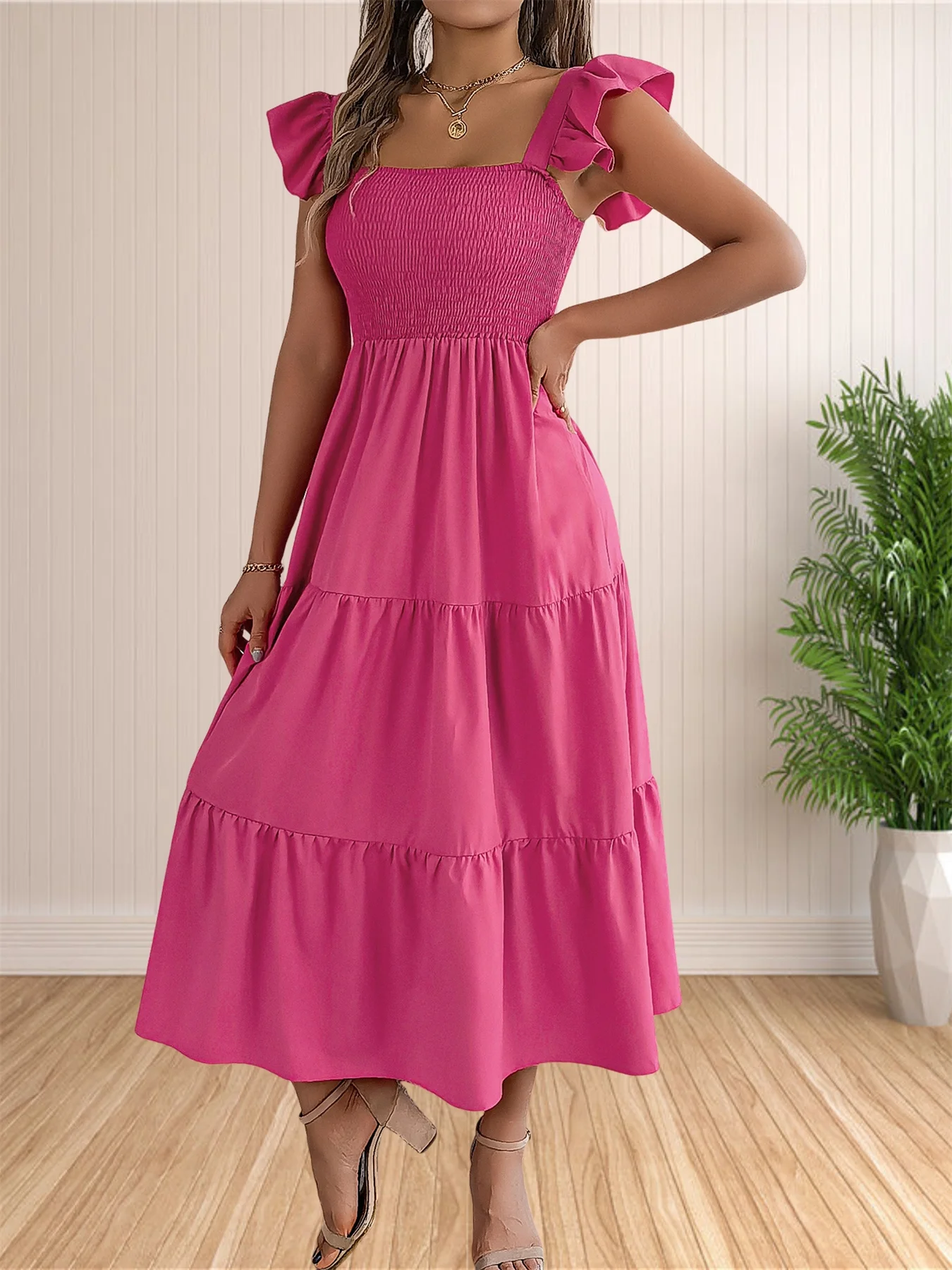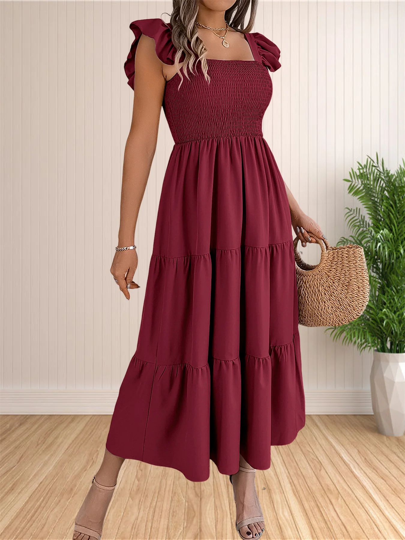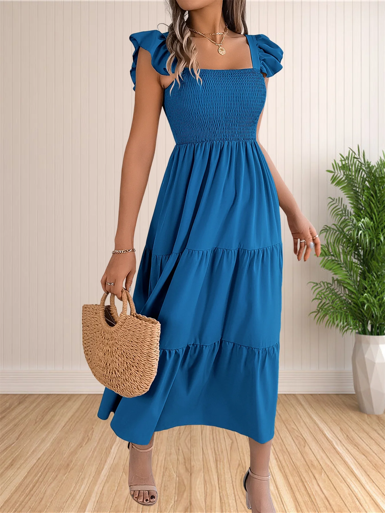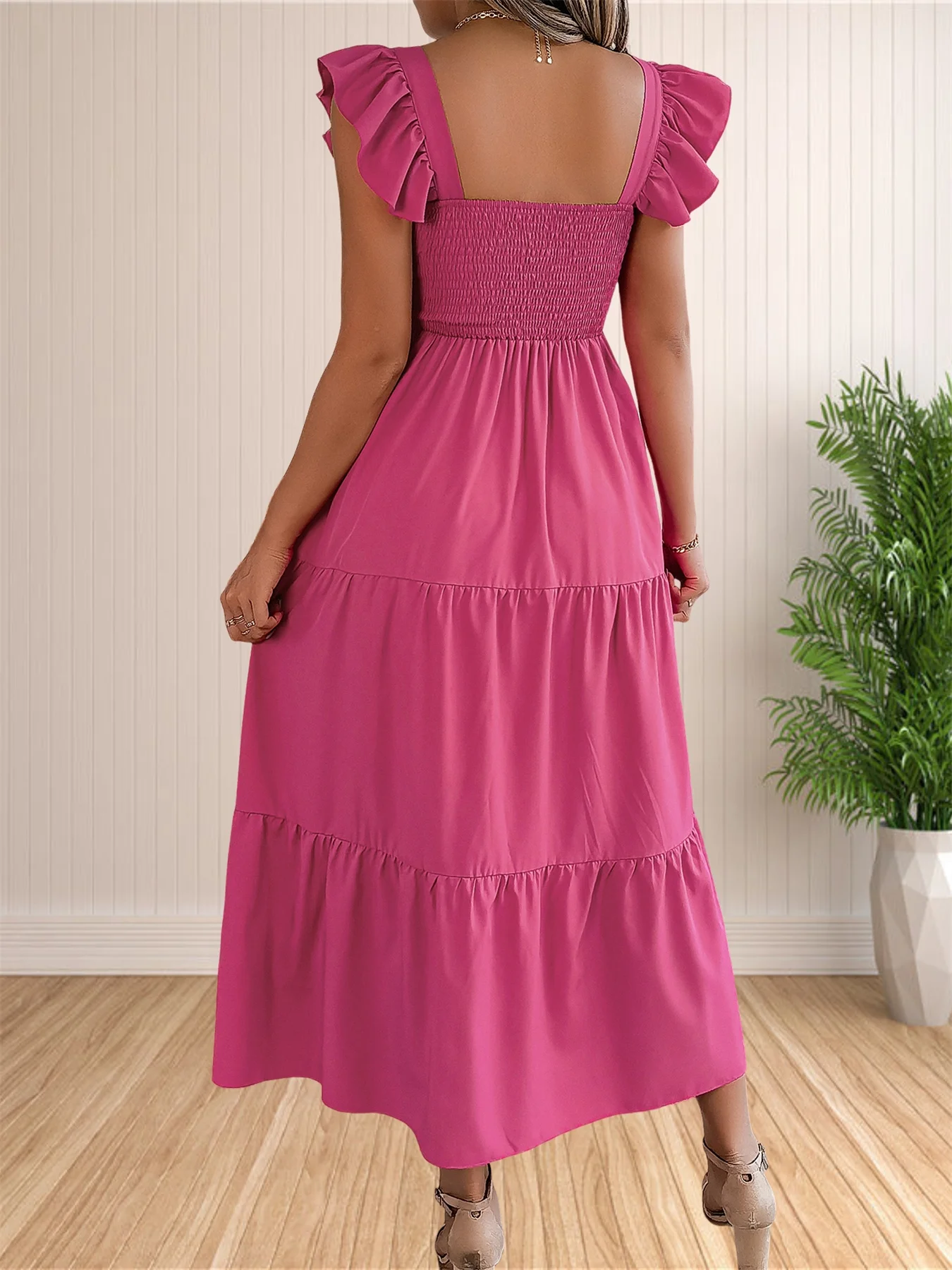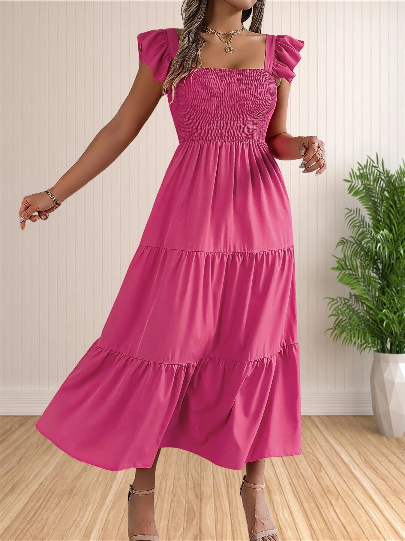 Women’s Summer Boho Dress Casual Floral Print Spaghetti Strap Square Neck Long Maxi Dress Beach Sun Dress