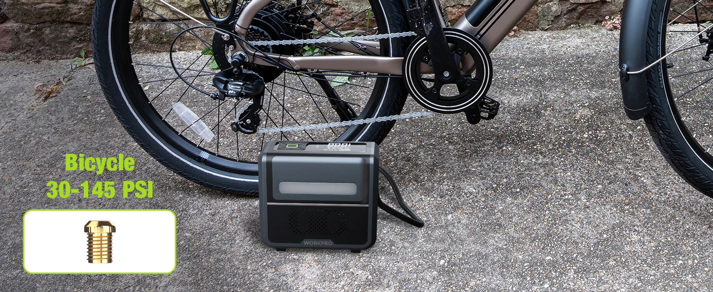 Bicycle mode: default 45PSI, adjustable range 30-145PSI