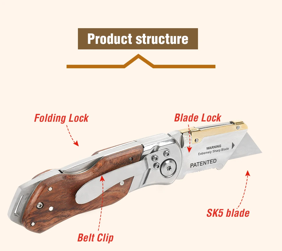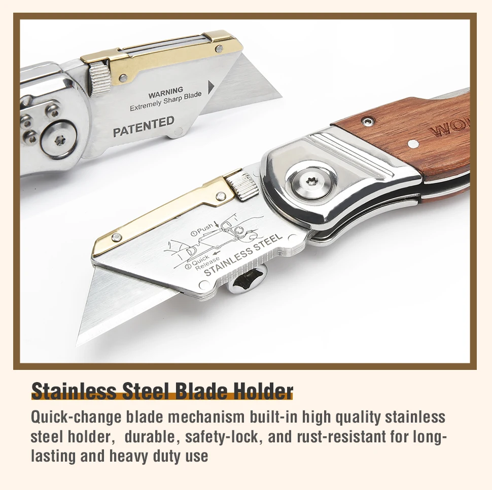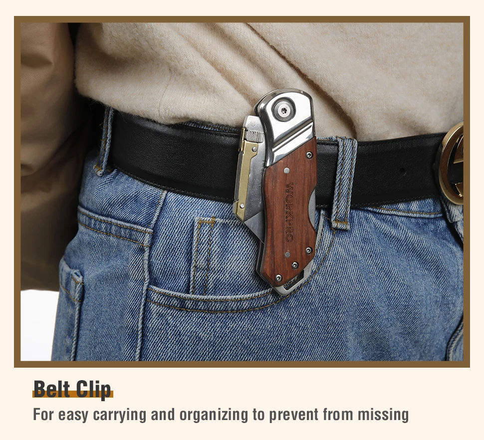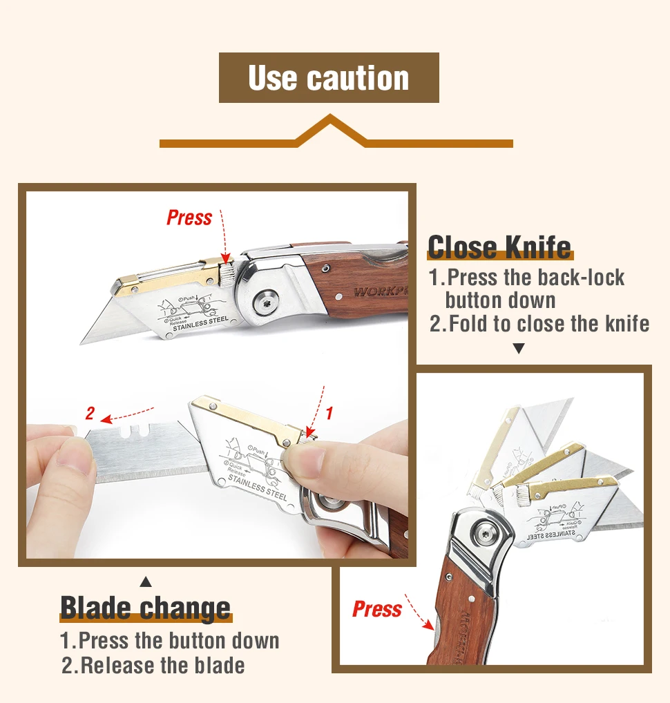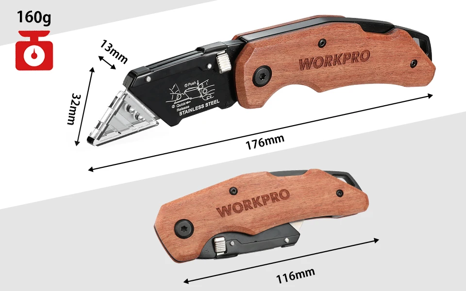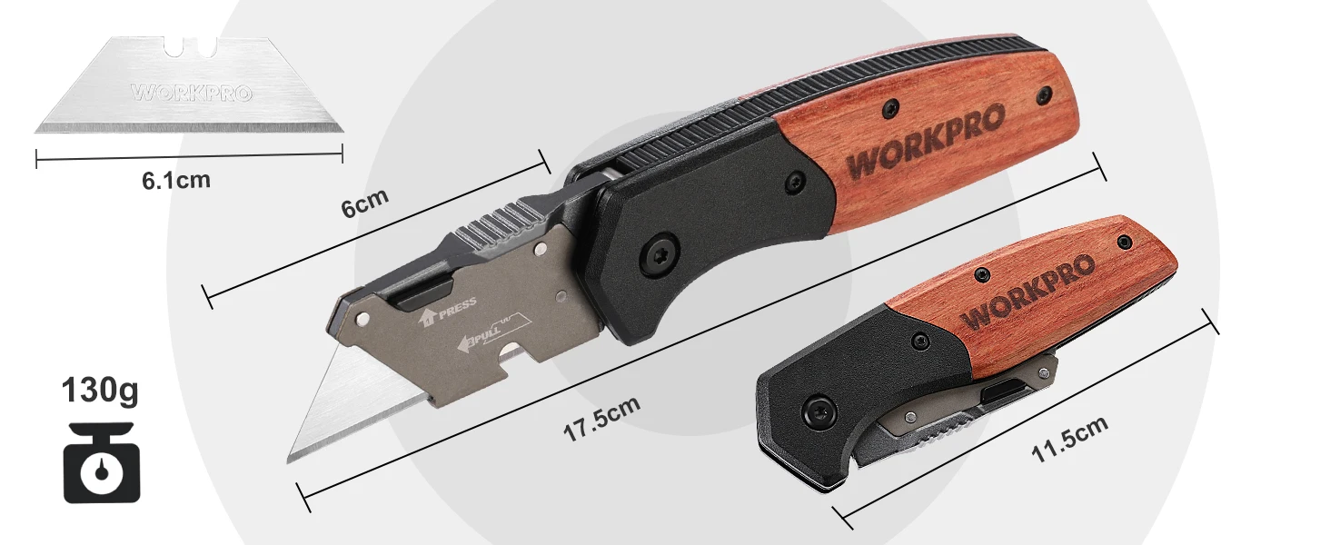 WORKPRO Folding Knife Replaceable Utility Knife for Cable Cartons Carboard Boxes Cutter Handle Knife 10 Pcs Blades OutdoorTool