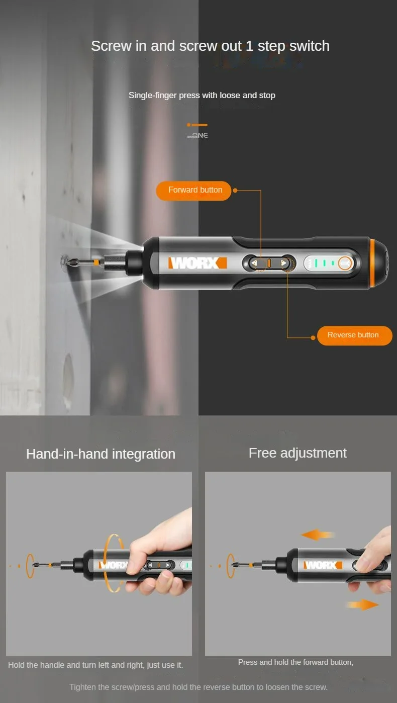 Worx 4V Mini Electrical Screwdriver Set WX242 Smart Cordless Electric Screw Driver USB Rechargeable Handle 30 Bit Set Drill Tool