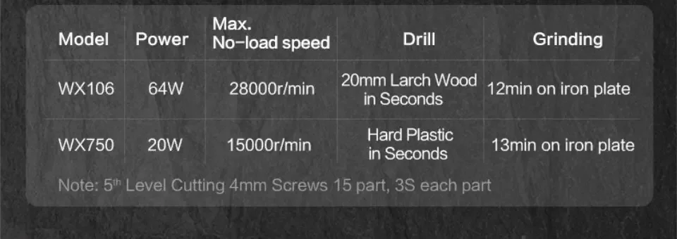 – Slim body and high quality, more comfortable to hold (WX750 diameter 37.5, Dremel
