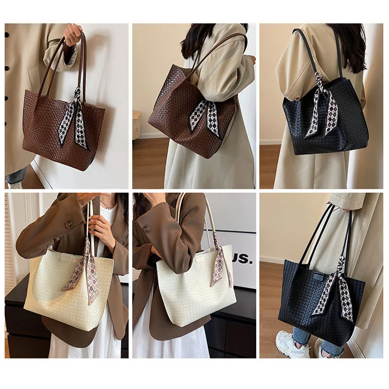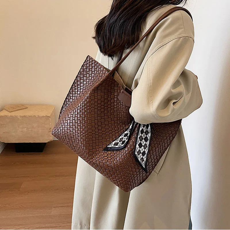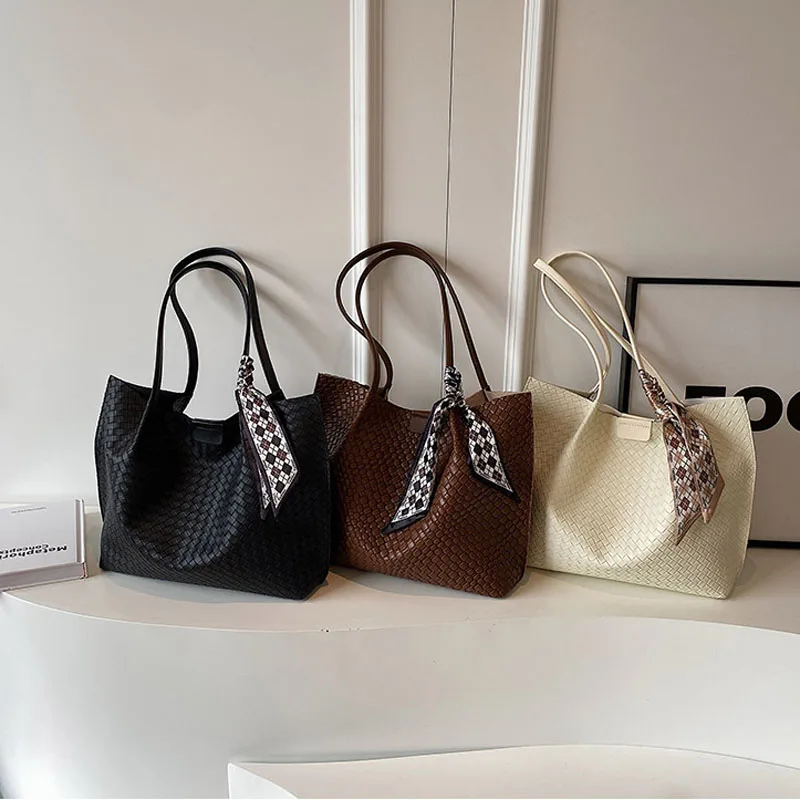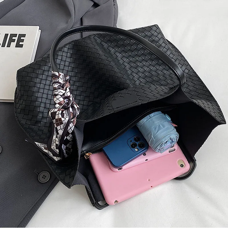 woven leather tote bags for women luxury vegan PU Large Summer Beach Travel Handbag and Purse Retro Handmade Shoulder Bag
