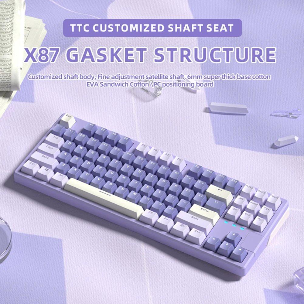 X87 Mechanical Keyboard RGB Hot Swap 87 Keys Wired Game Keyboard PBT Keycap GASKET Structure 11 Light Effects Win iOS One-key Switch for Computer PC Laptop