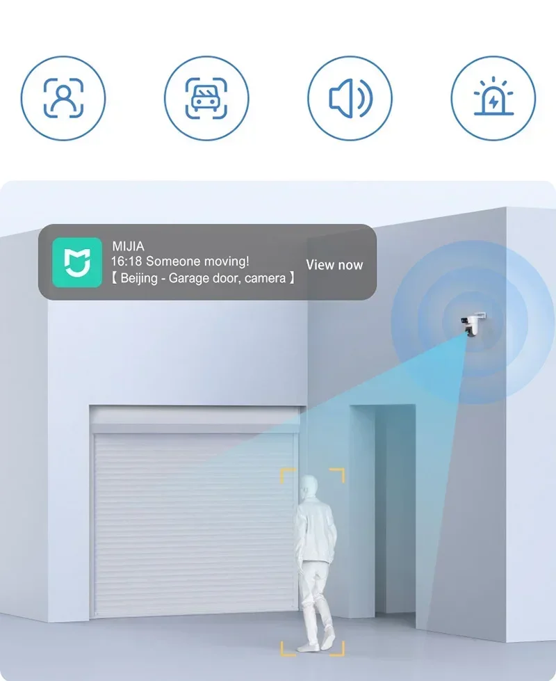 ● Utilizes AI detection for humanoid and vehicle detection, providing proactive notifications via the Mi Home app to ensure property safety.