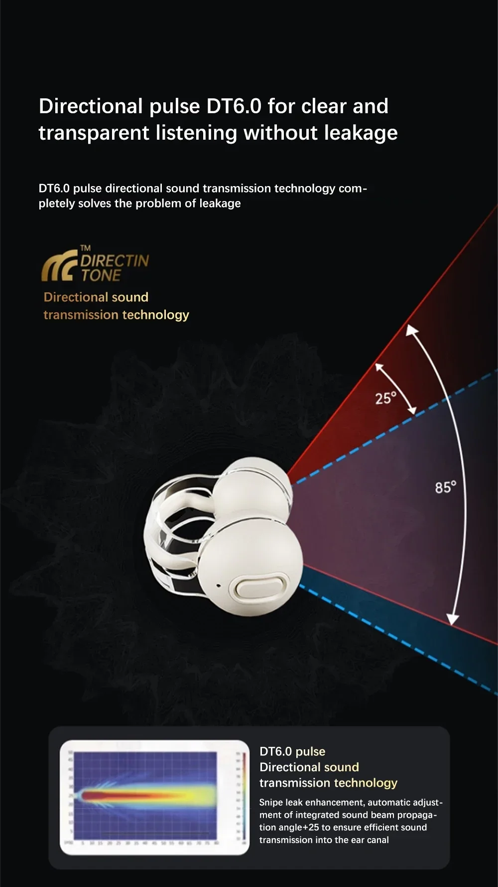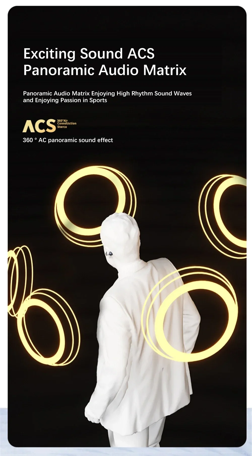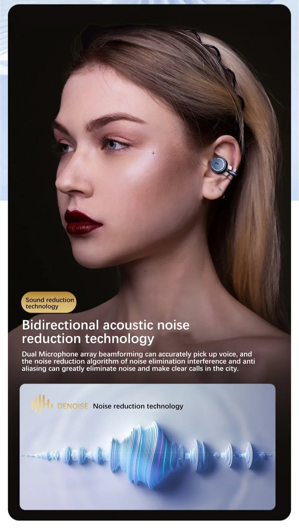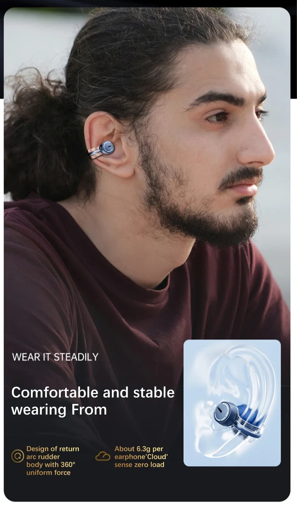 New 5.3 chip enhanced battery, low power consumption and long battery life, you can enjoy TV program and games. The bone conduction headset can be used up to 6.5 hours with a single full charge of Bluetooth. When used with the charging box, the playback time of both ears can be up to 36 hours.