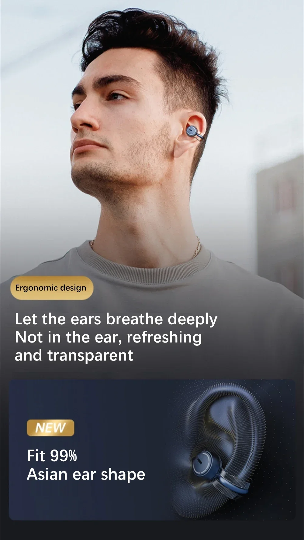 This Xiaomi Bluetooth Earbuds is ear clip design, everyone can wear, the ear canal is not completely obscured, so you can hear the surrounding sounds (cars, traffic lights, emergency vehicles sirens, etc.), listening to songs can wear headphones, enjoy a completely open music feast, do not block the ears, clip fit innovation, no need to insert in the ear. Innovative clip-on fit, no need to use ear plugs, reduce the stimulation of the eardrum and reduce the burden on the ears. Comfortable fit for long time use.