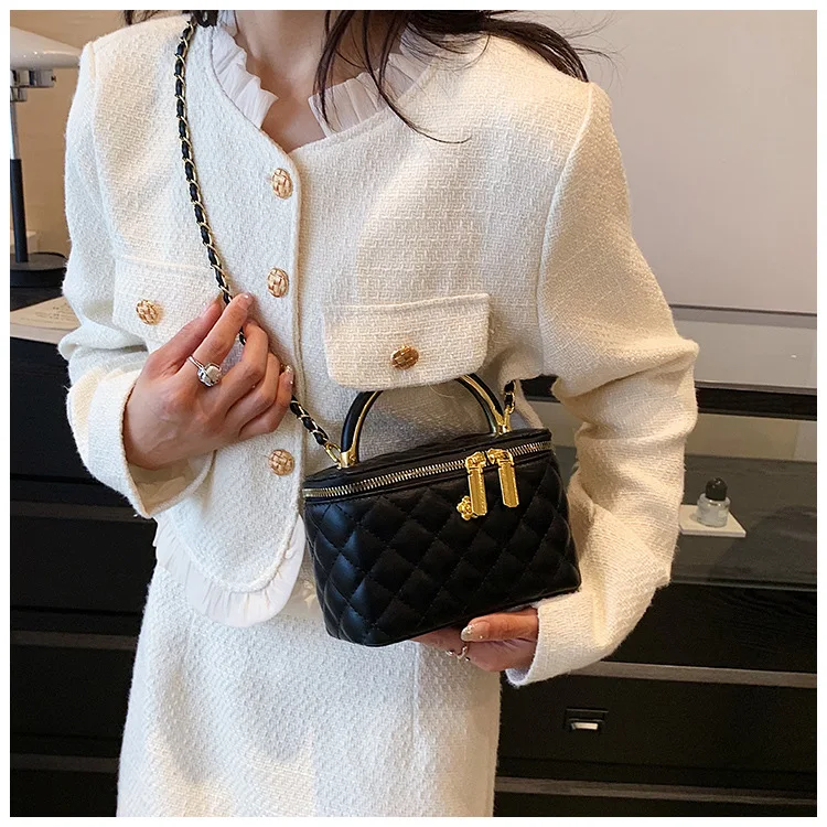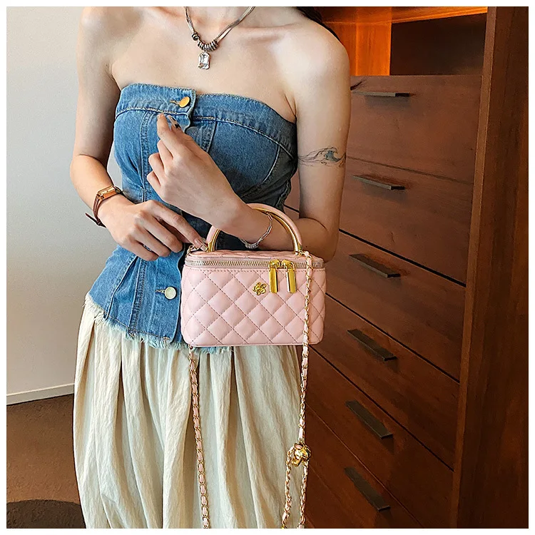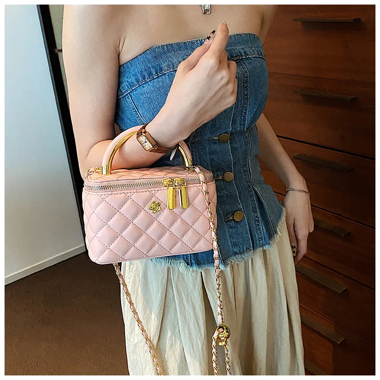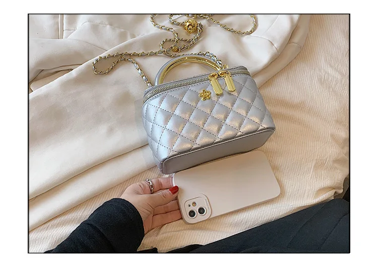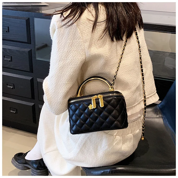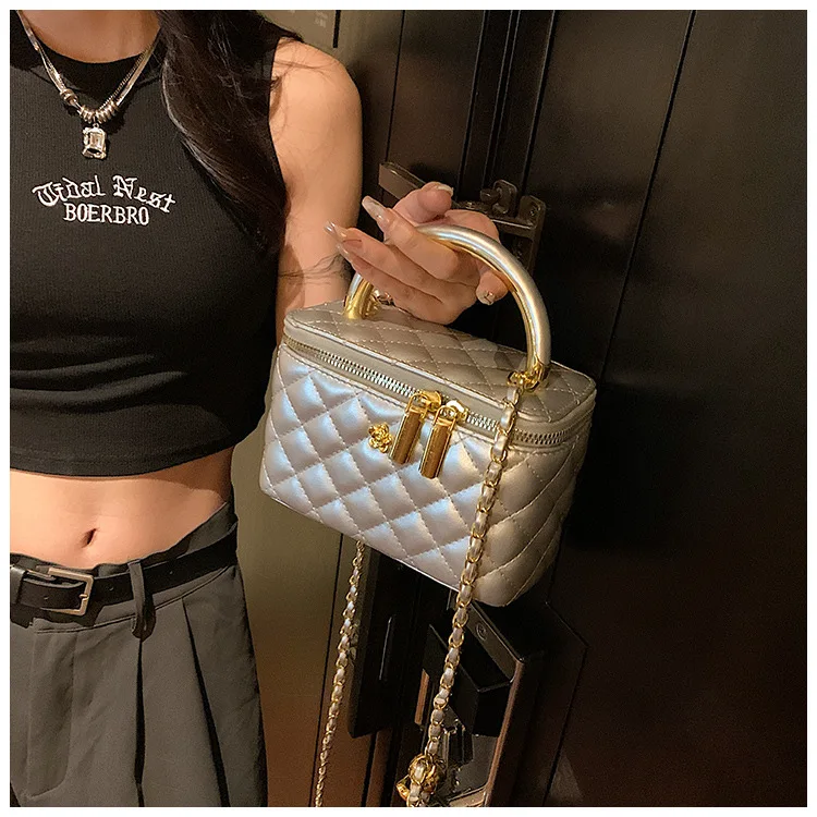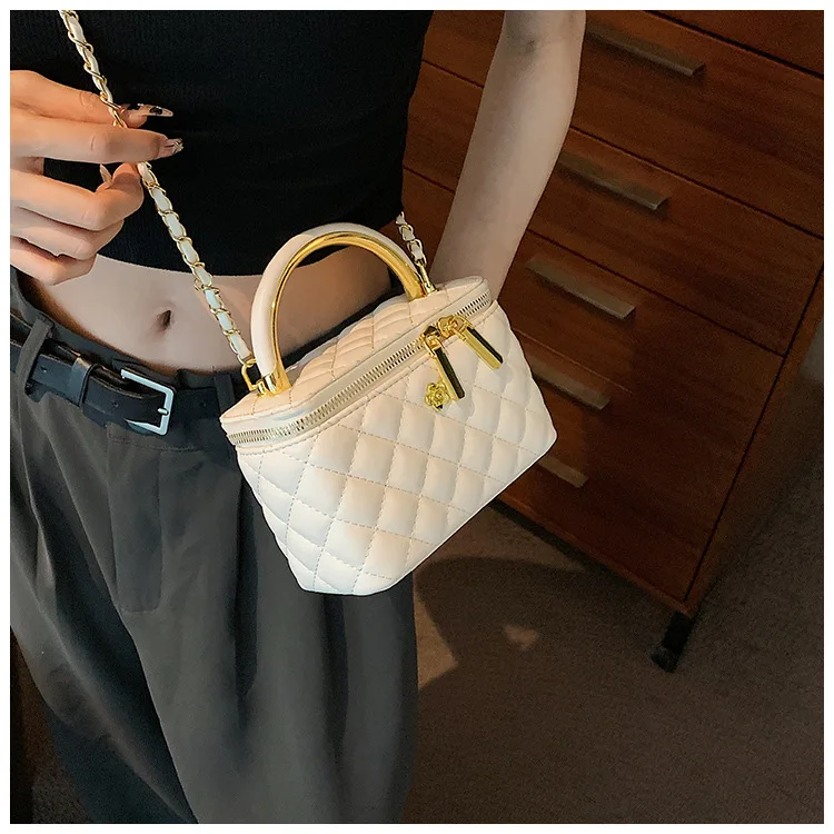 XOUHAM Quilted Shoulder Bag for Women PU Leather British Style Handbag Ladies Chain Crossbody Bags Female Small Square Pocket