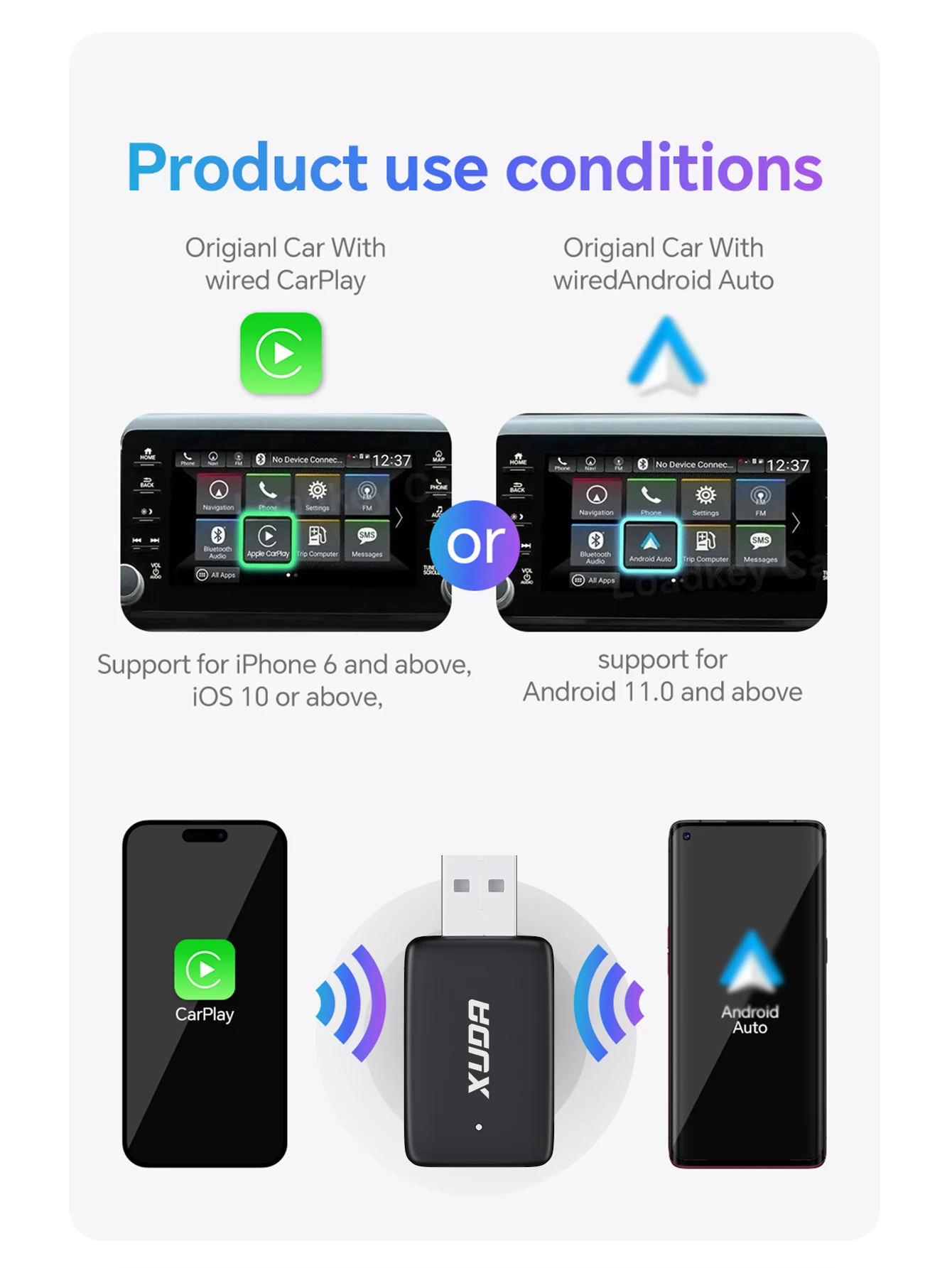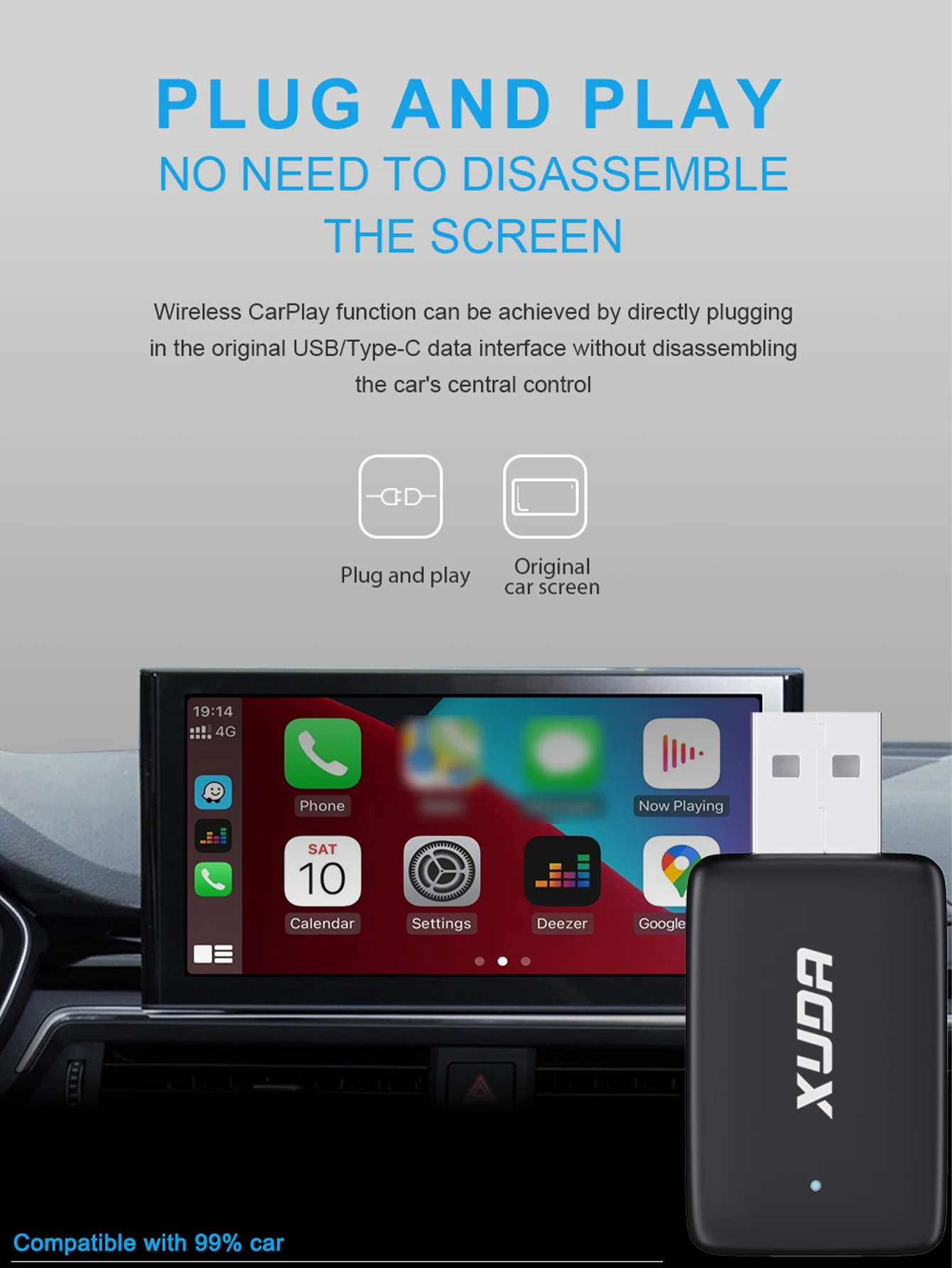 XUDA NEW Mini wired to wireless CarPlay & Android Auto 2in1 adapter is suitable for 99% of original cars with wired carplay/auto