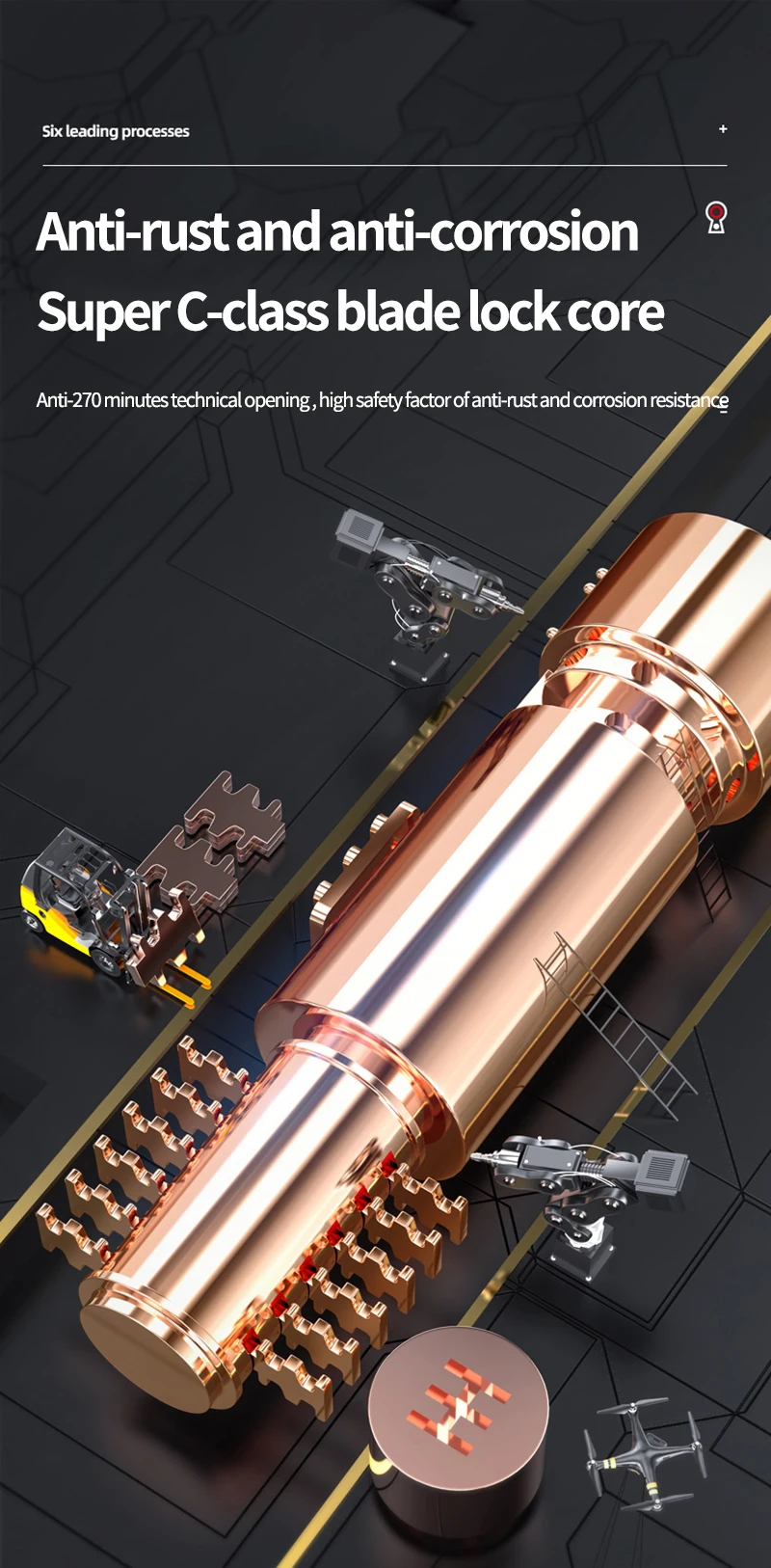 Disc key for additional anti-pick protection.