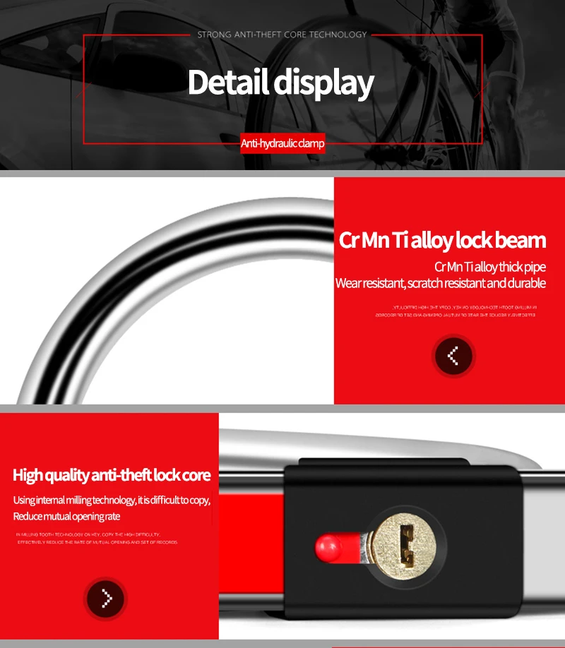 Xunting Bicycle U Lock MTB Road Bike Wheel Lock Anti-Theft Safety Motorcycle Scooter Cycling Lock Strong Bicycle Accessories
