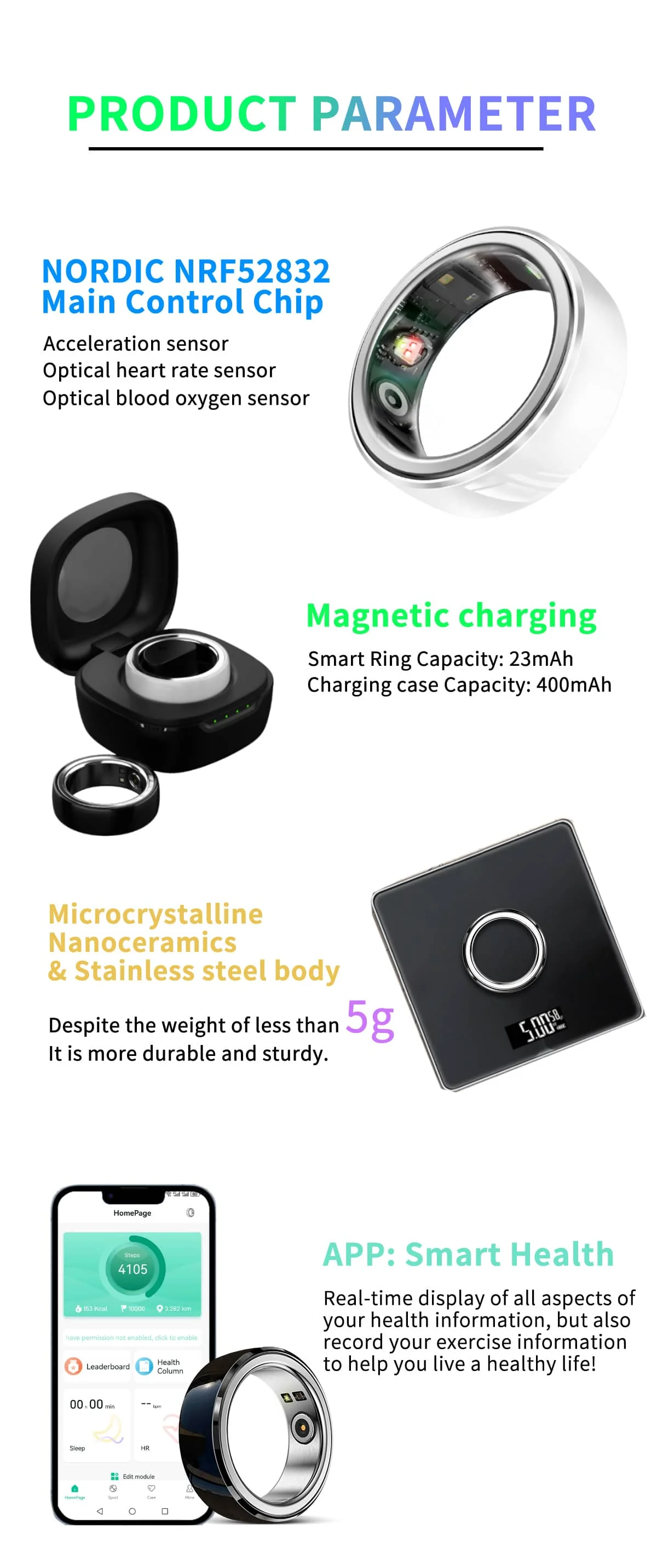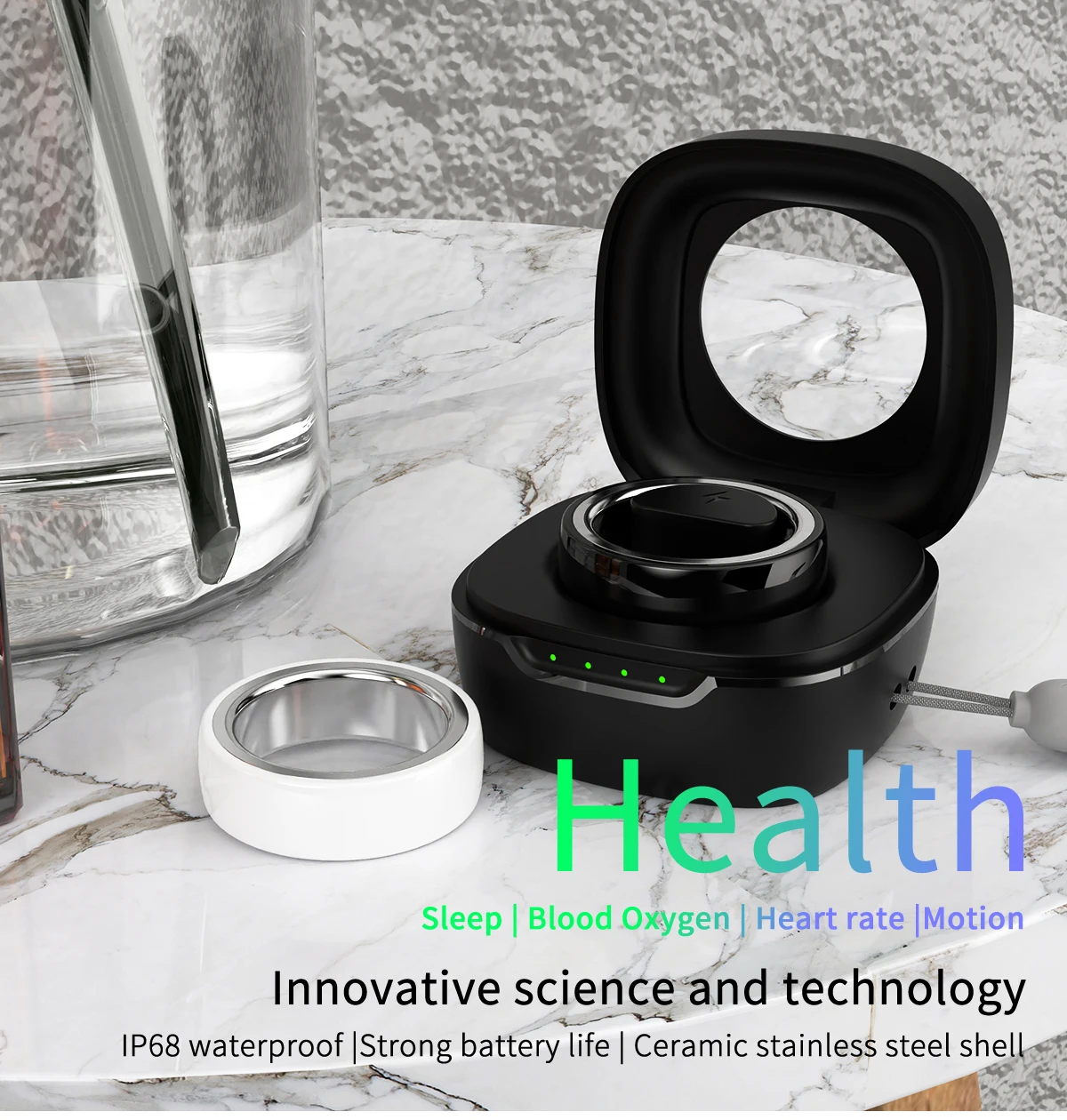 YERSIDA R08M Smart Ring W/ Charging Case Fitness Tracker Rings IPX8 Waterproof Health Heart Rate Blood Oxygen Sleep Monitoring