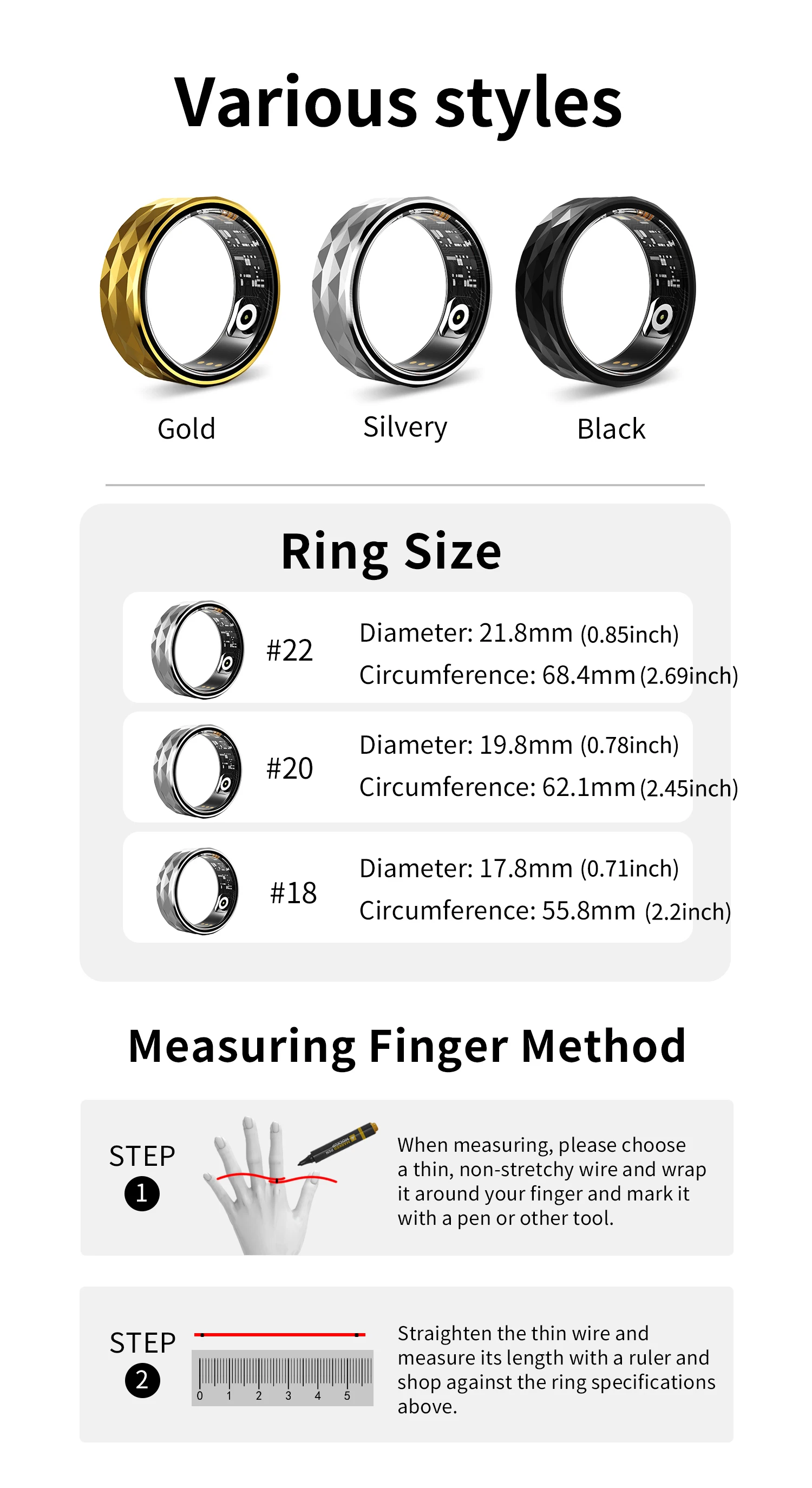 YERSIDA R12M Smart Ring Sleep Monitoring Health Monitoring IP68 5ATM Waterproof Multi-sport Modes Steps Distance Calorie Counting