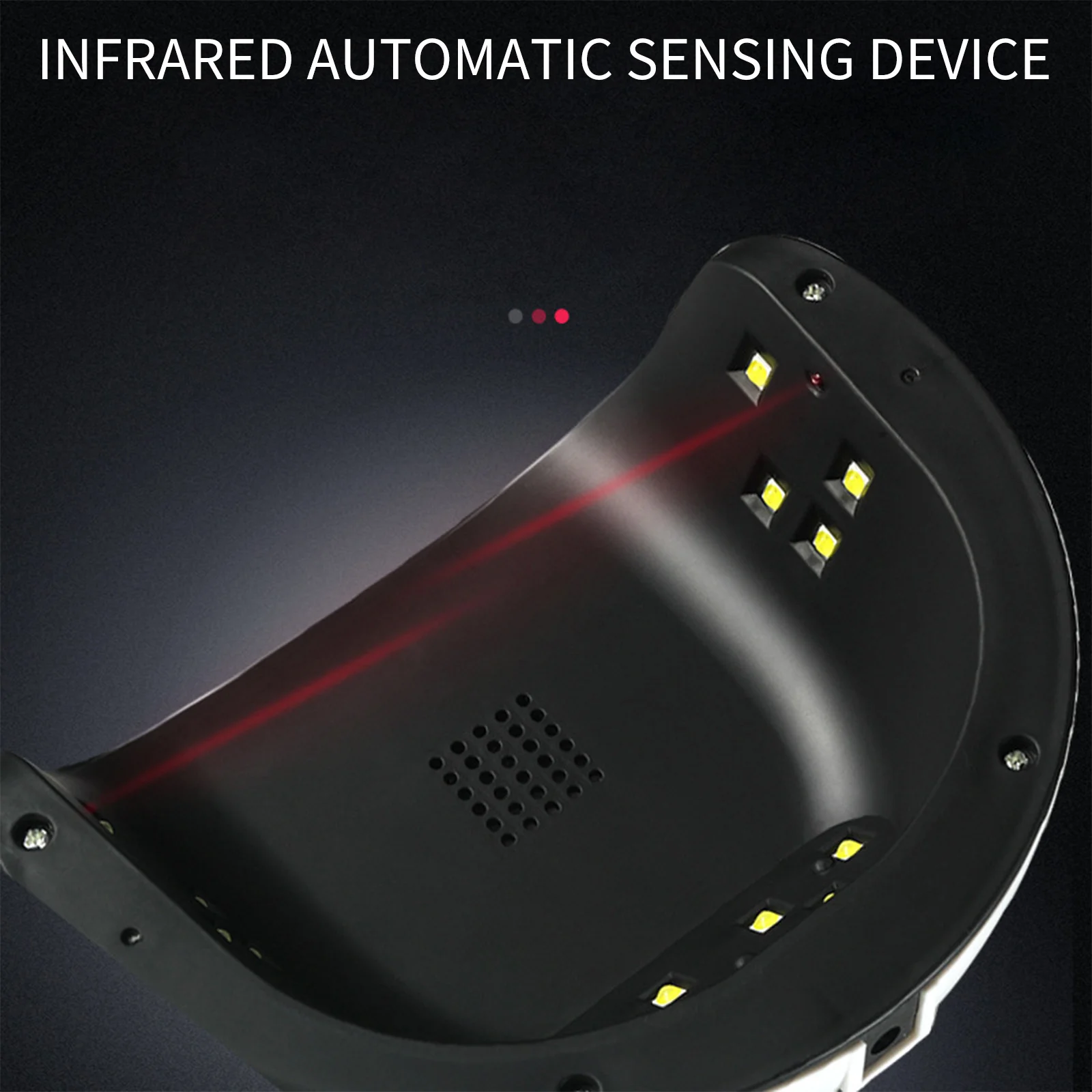 3..The nail lamp can operate automatically without the need for a timer, turning on when the user’s hands are in the gel cure lamp and turning it off when they are finished. Intelligent timing design allows you to easily control the curing time.