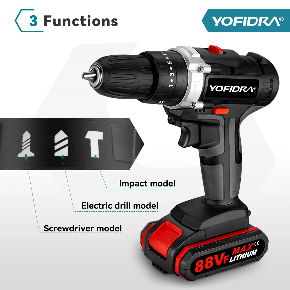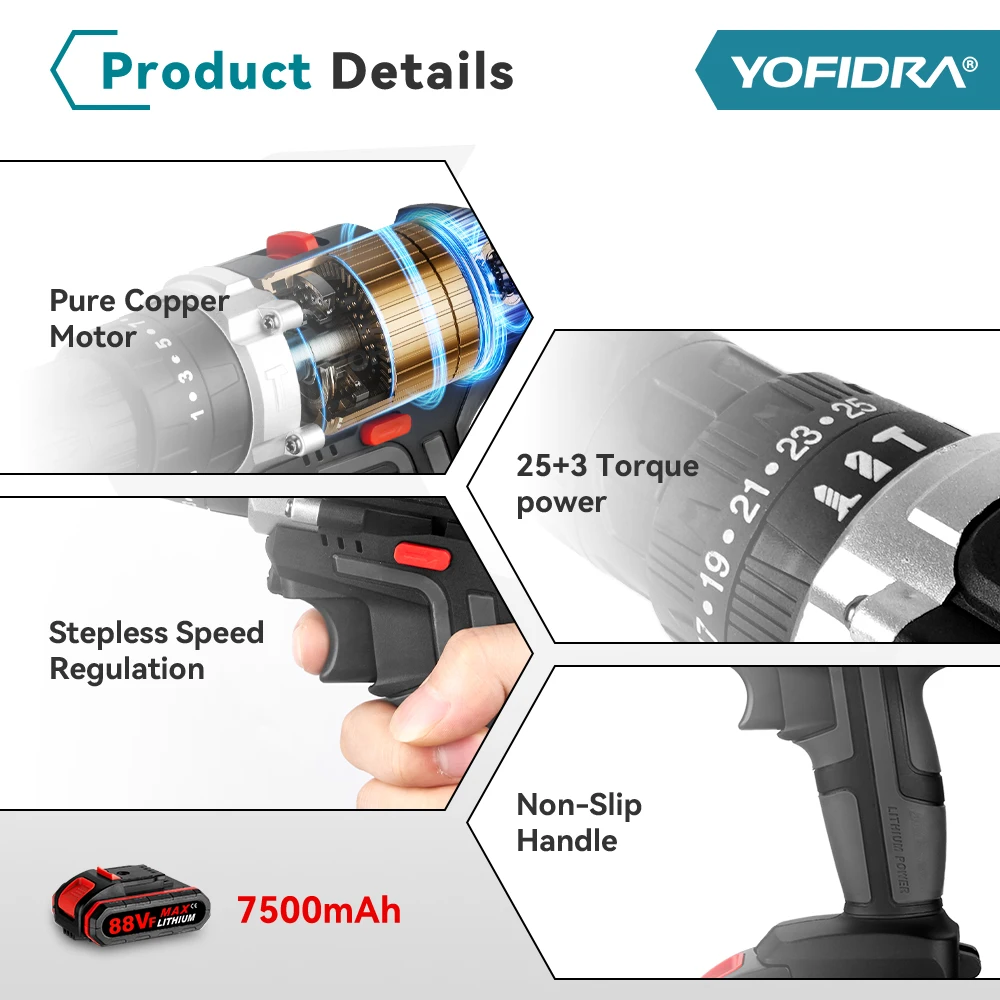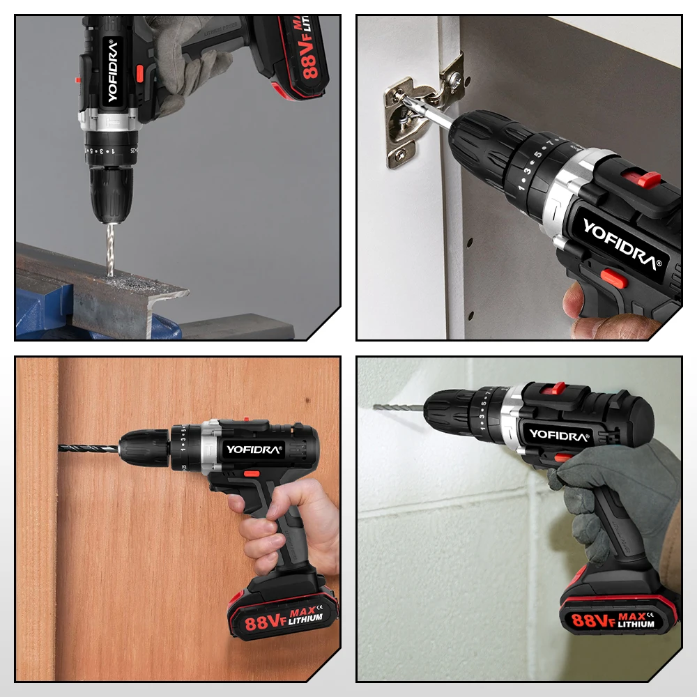 Cordless Electric Screwdriver 25+3 Torque Efficient Rechargeable Impact Drill Handheld Hammer Drill Power Tool