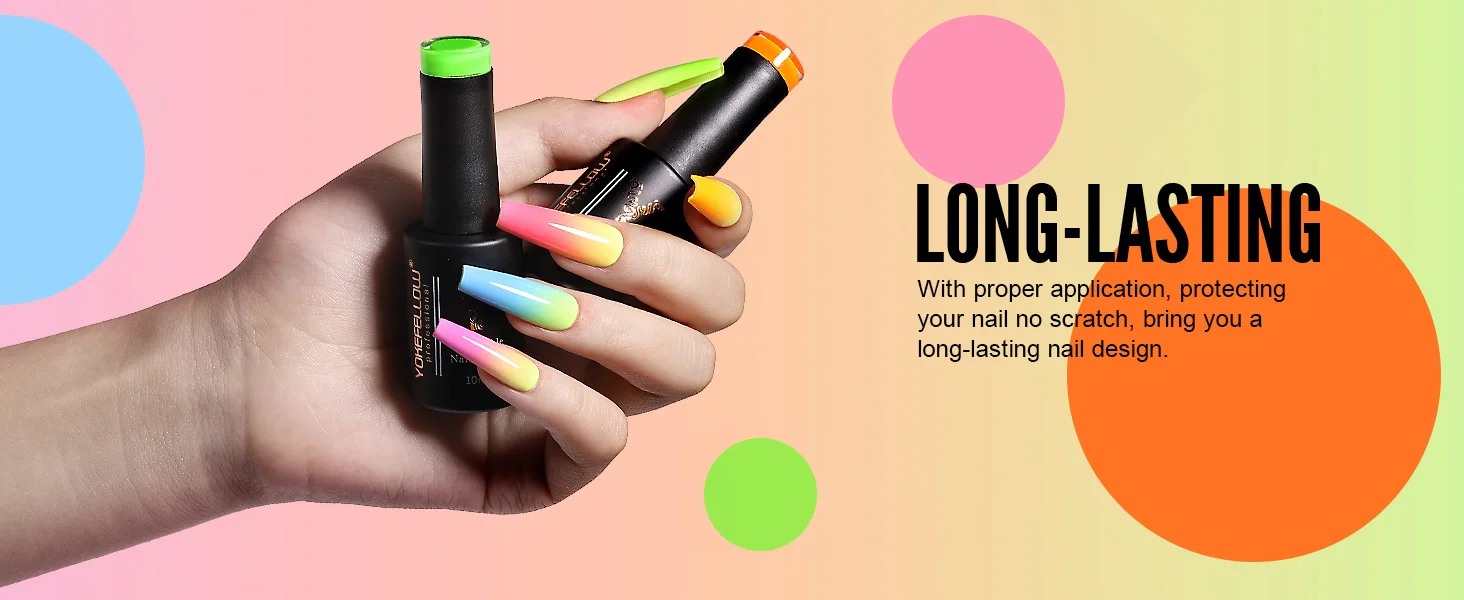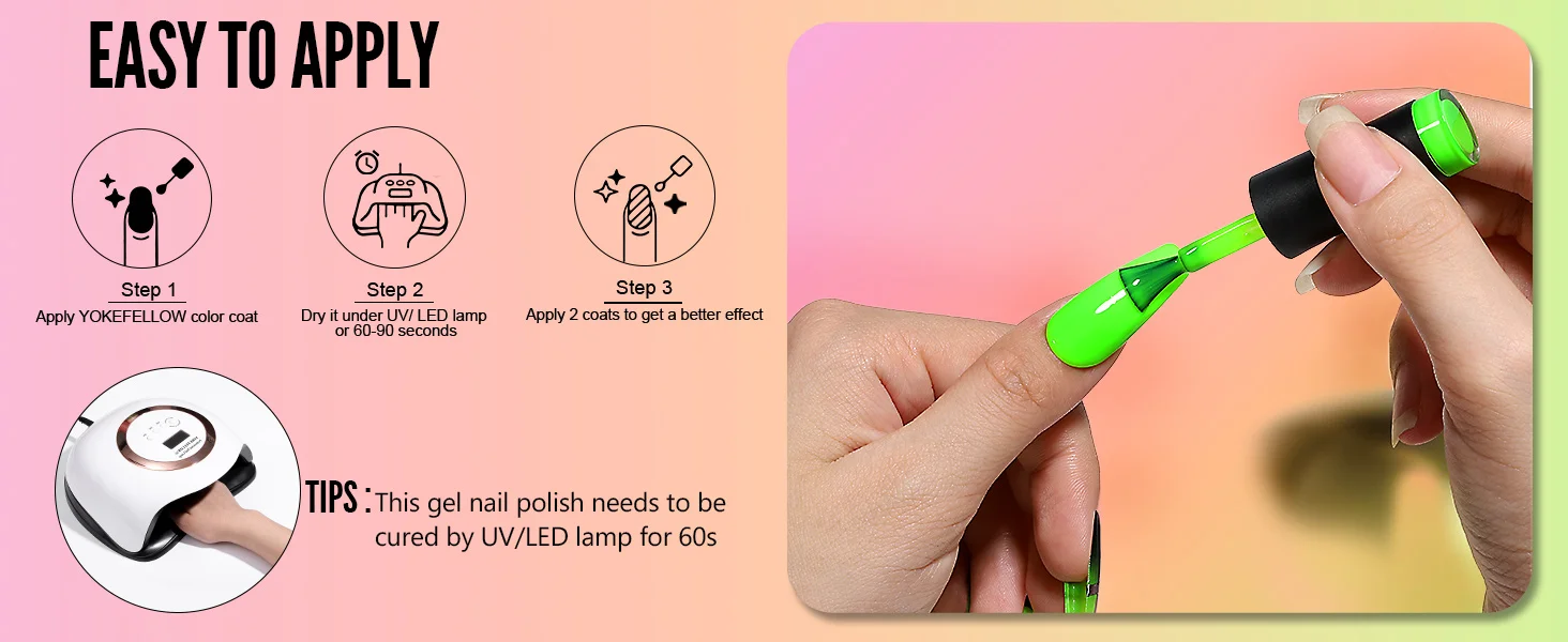 • Neon Bright Colors :The YOKEFELLOW Gel Nail Polish Kit comes in a set of 6 neon bright colors that will make your nails stand out.