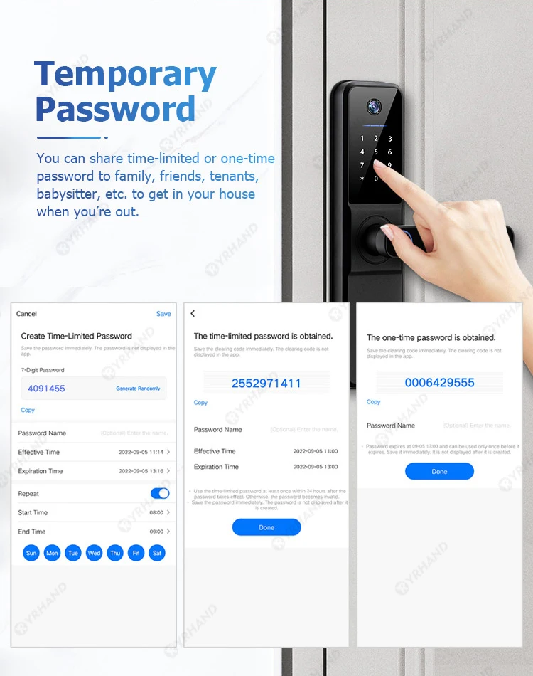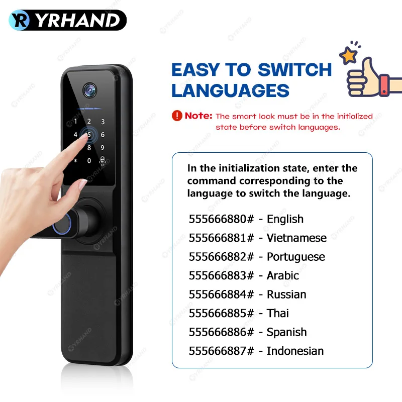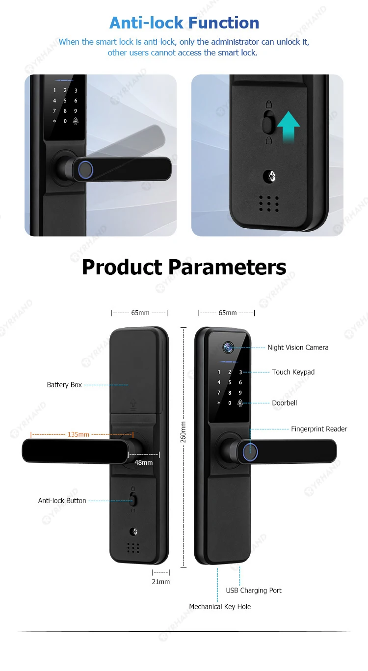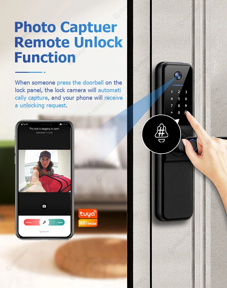 YRHAND H01 fechadura eletronica Tuya Wifi Digital Electronic Smart Door Lock With Biometric Camera Fingerprint IP66 Smart Lock