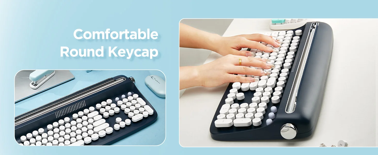 YUNZII B503 combines retro style with modern design, compact layout, cute keycap, edge wireless technology, and pastel aesthetic that brightens up your desk setup and brings more enjoyable typing.