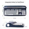 The wireless keyboard is designed with an integrated stand holder to match the desk aesthetic and more space-saving. The keyboard also includes adjustable button feet that can ensure comfortable long-time typing. The built-in tablet phone pad holder is 17.8 inches in length and 0.59 inches in width.