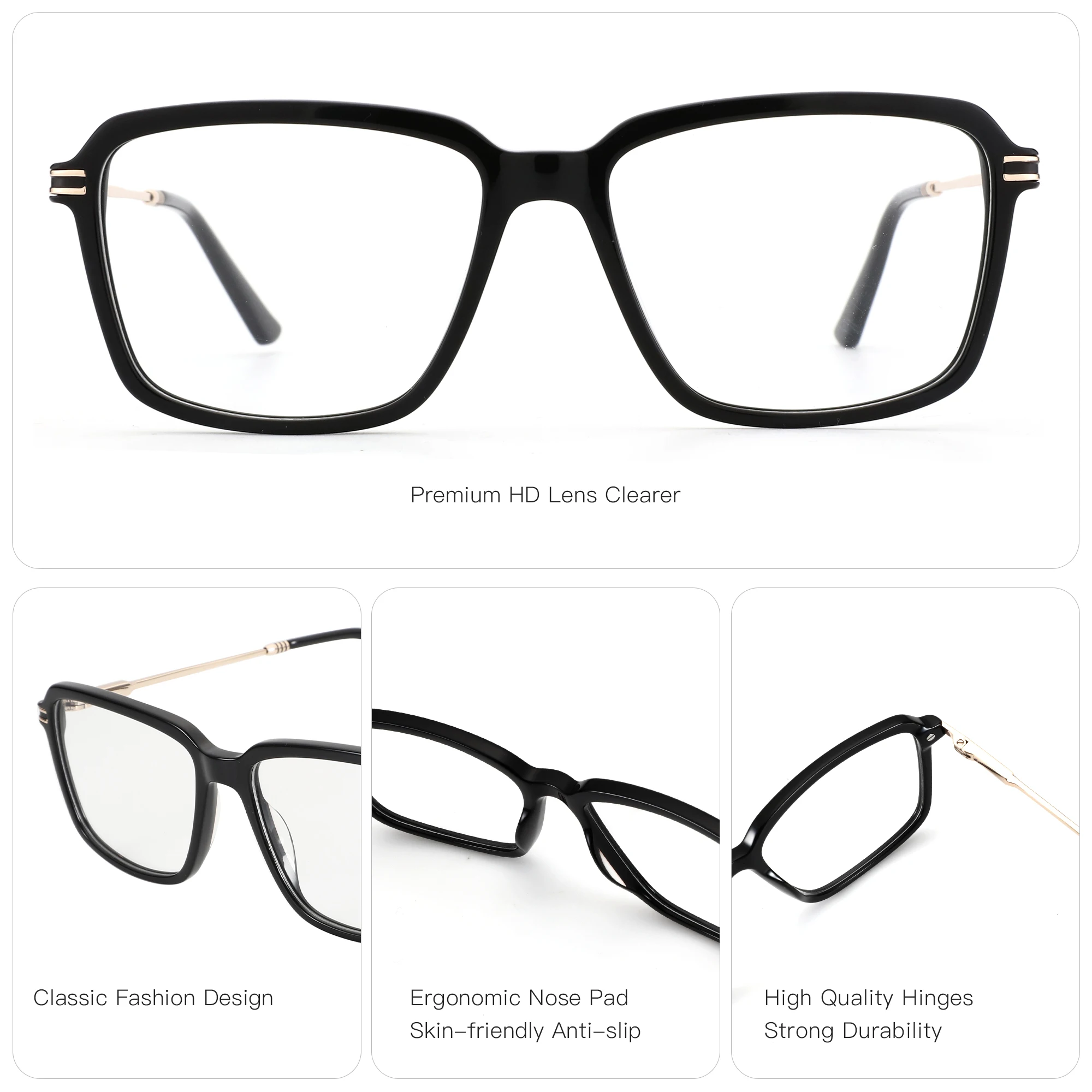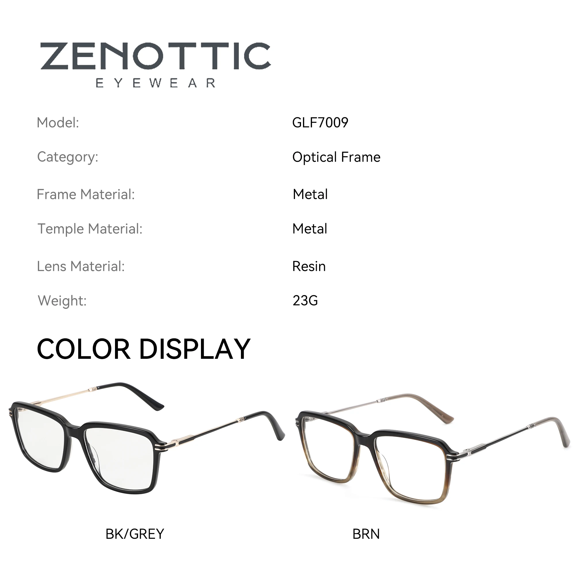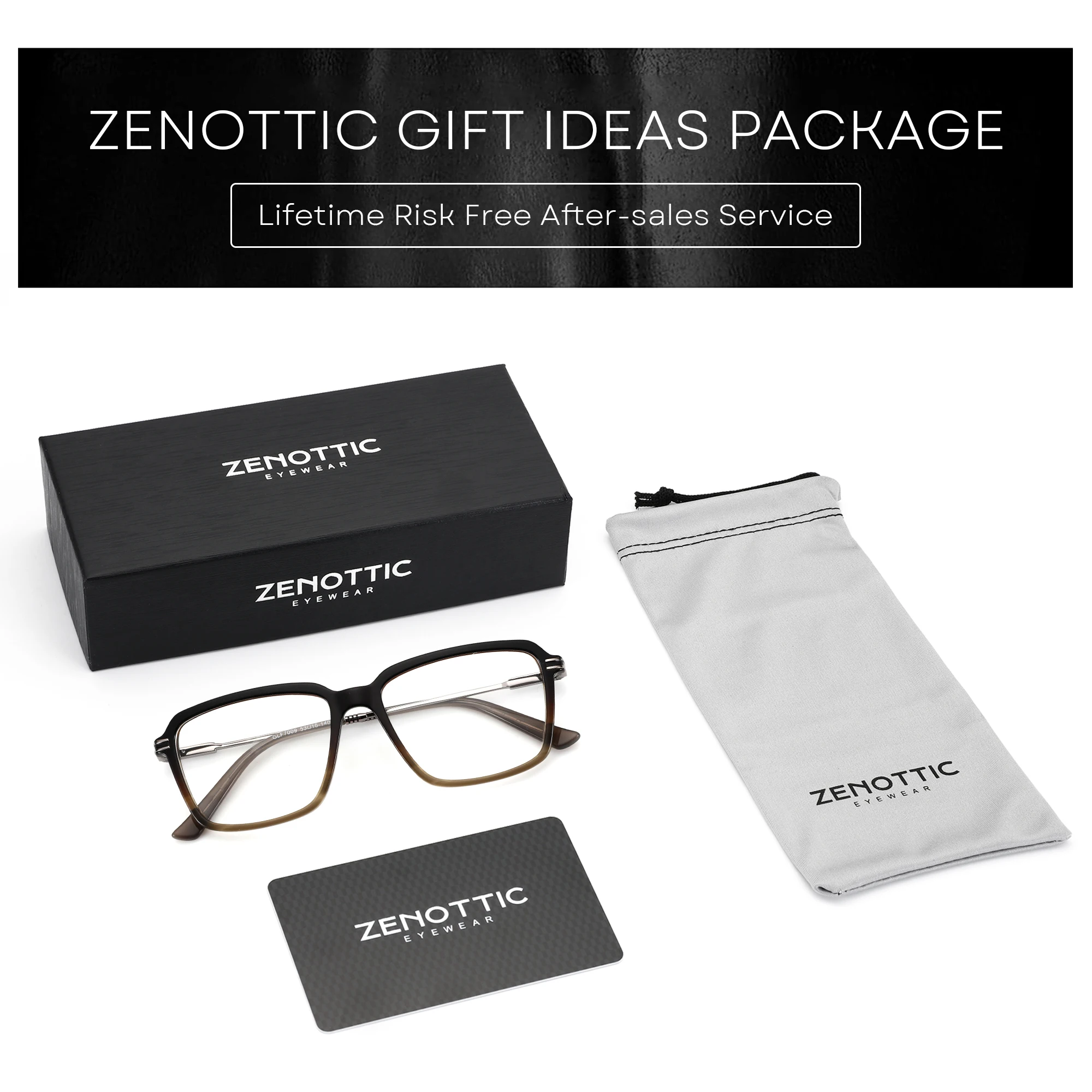 ZENOTTIC (M Size) Fashion Square Prescription Glasses Spring Leg Acetate Optical Eyeglasses for Men Anti Blue Light Photochromic