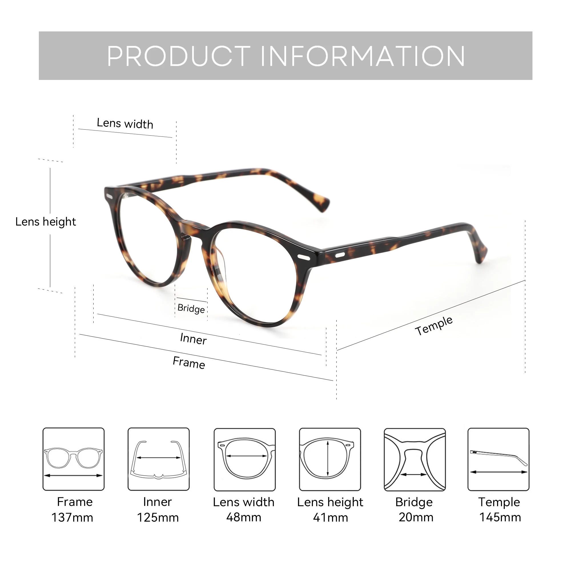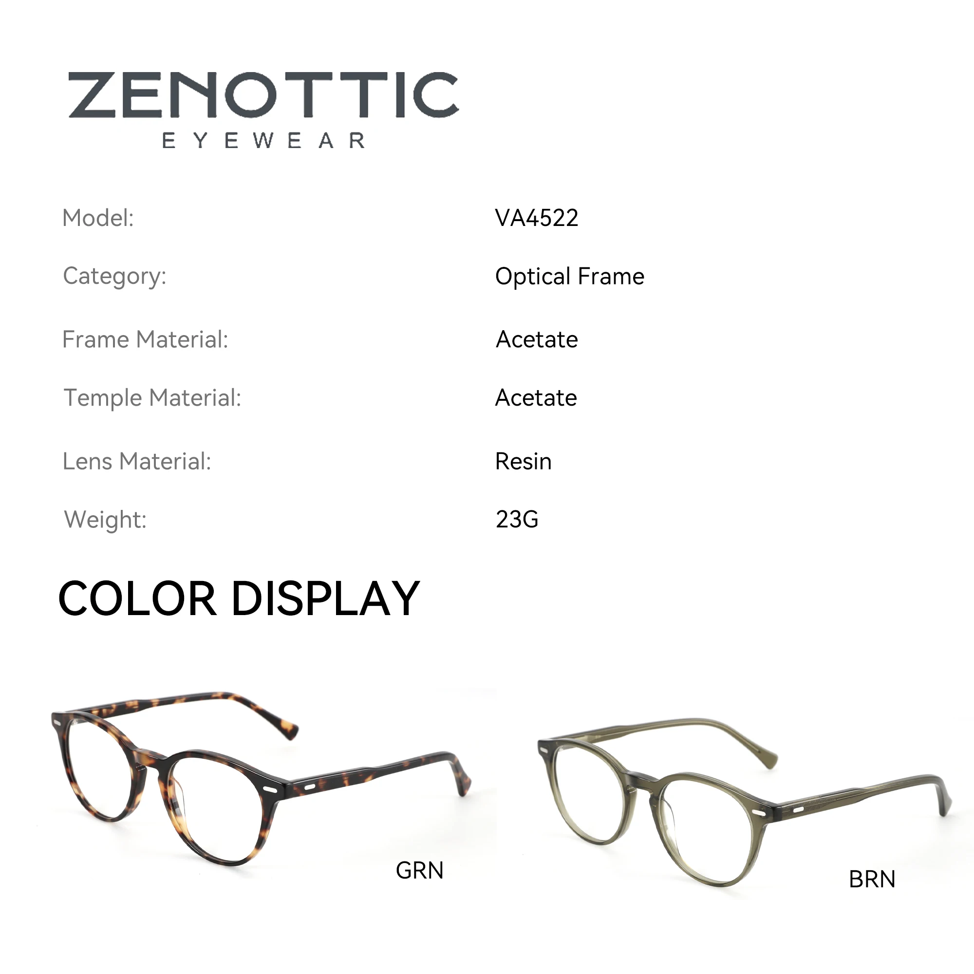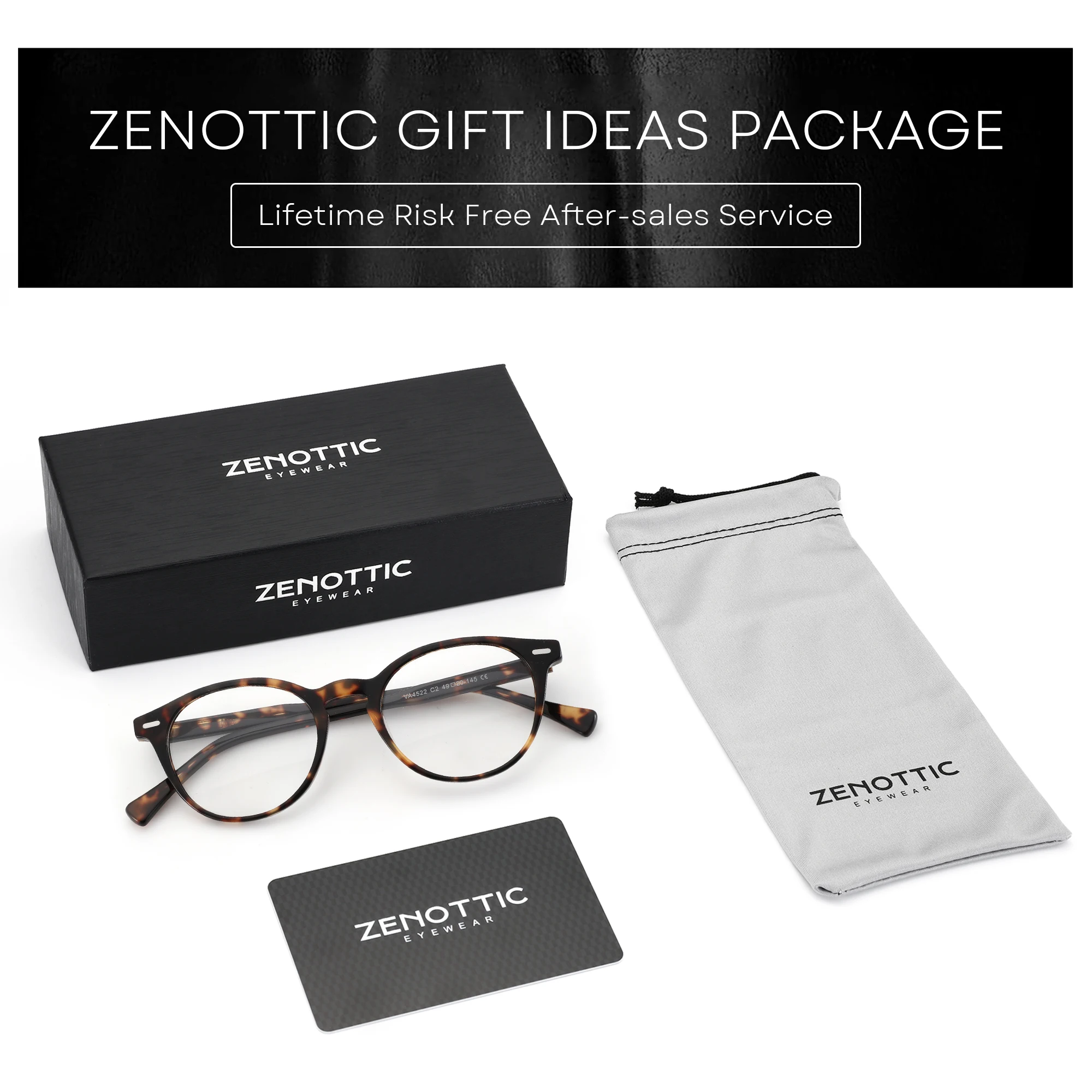ZENOTTIC Women Handmade Acetate Prescription Glasses Men Retro Round Anti Blue Light/Photochromic Optical Eyeglasses