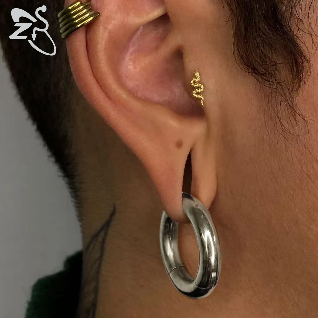 ZS 1PC G23 Titanium Hoop Earring for Women Silver Plated Circle Earring Large Gauge Seputm Nose Ring 2/4/6/8/10/12G Punk Earring